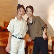 短かすぎず長すぎず絶妙なパンツと袖の丈感が細見えポイントです。