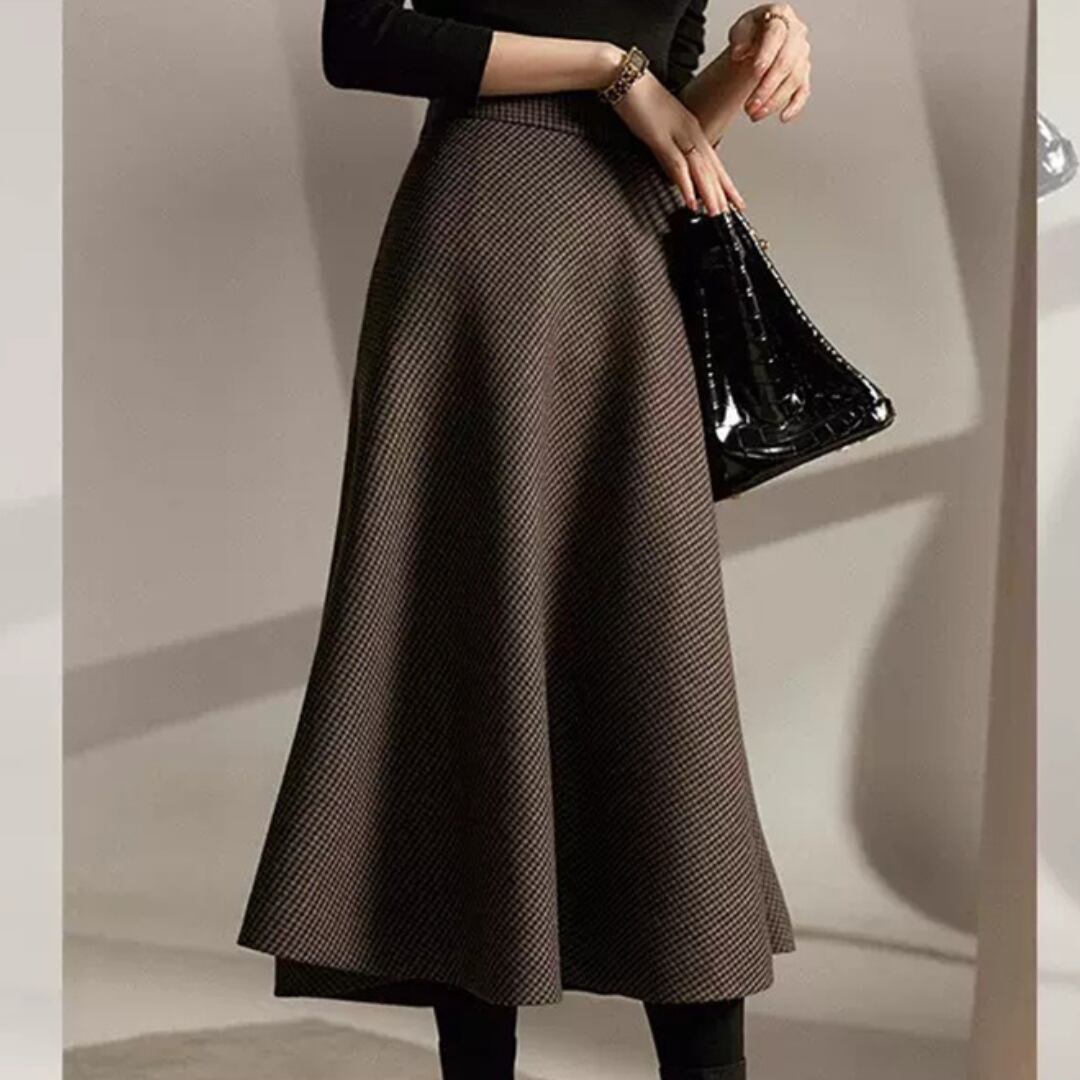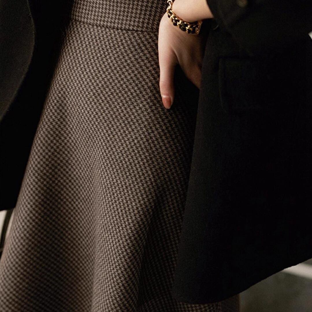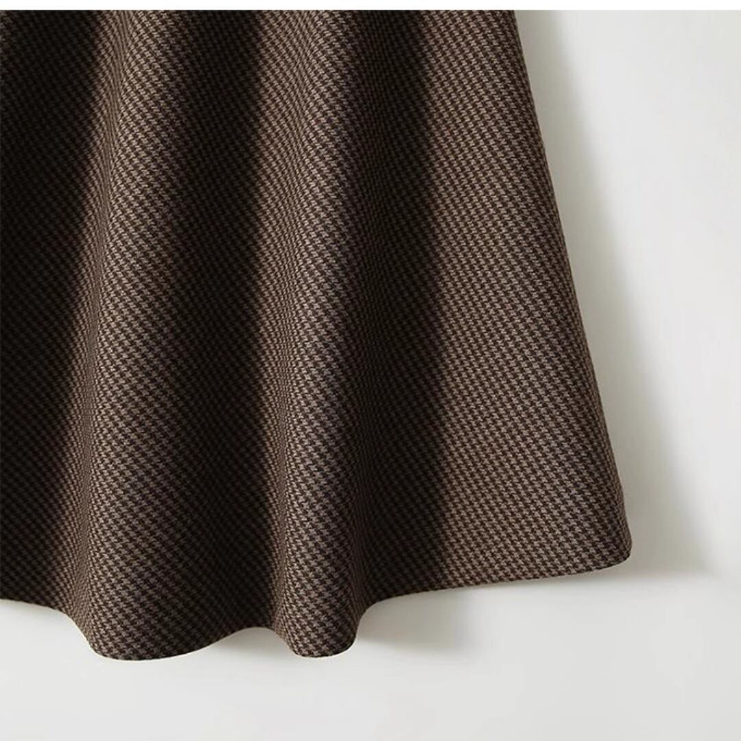 広がりすぎないAラインで縦長にスタイルアップみえが期待できるのも、嬉しいポイントです。