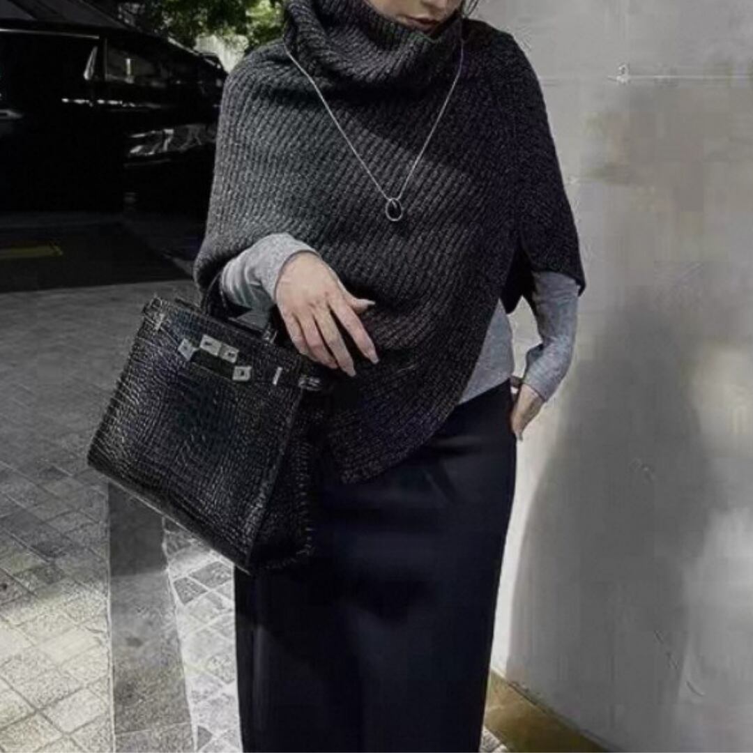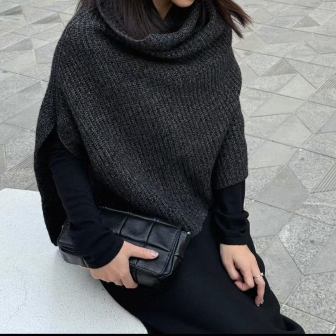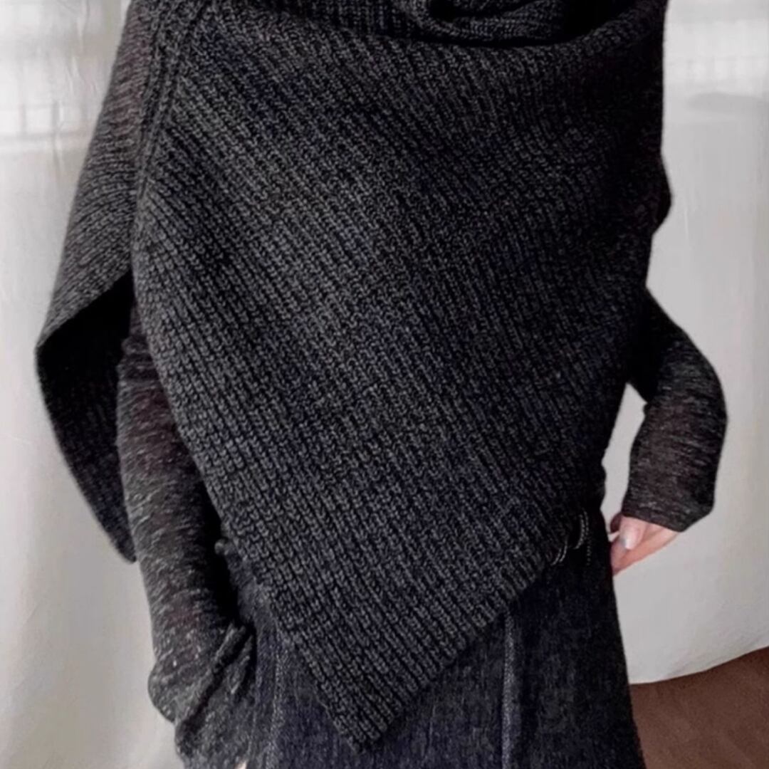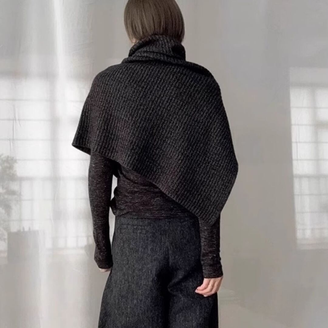 とてもおしゃれでこなれ感満載のアシンメトリーケープニット☆