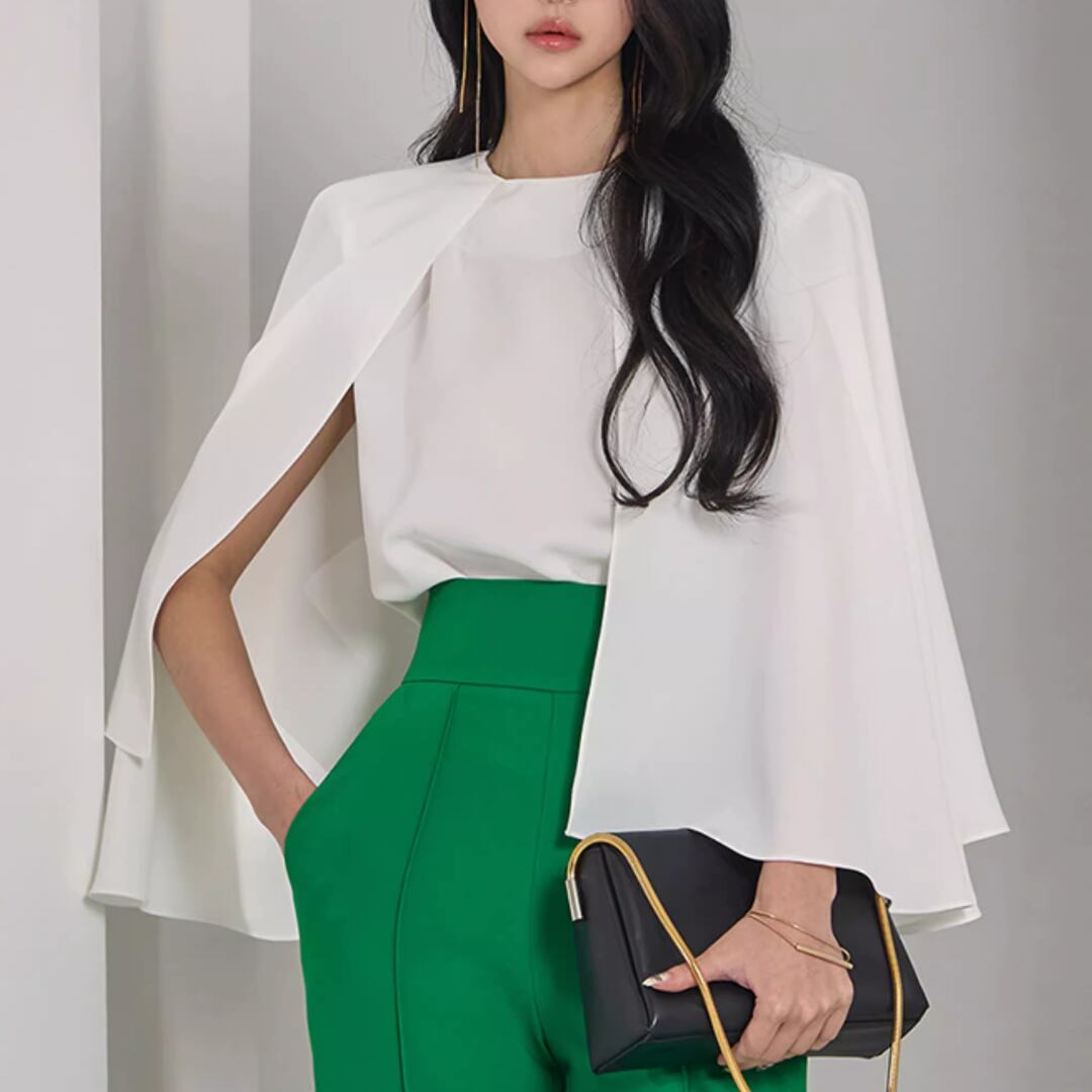 ラウンドネックショールケープバットスリーブシャツ JC0049