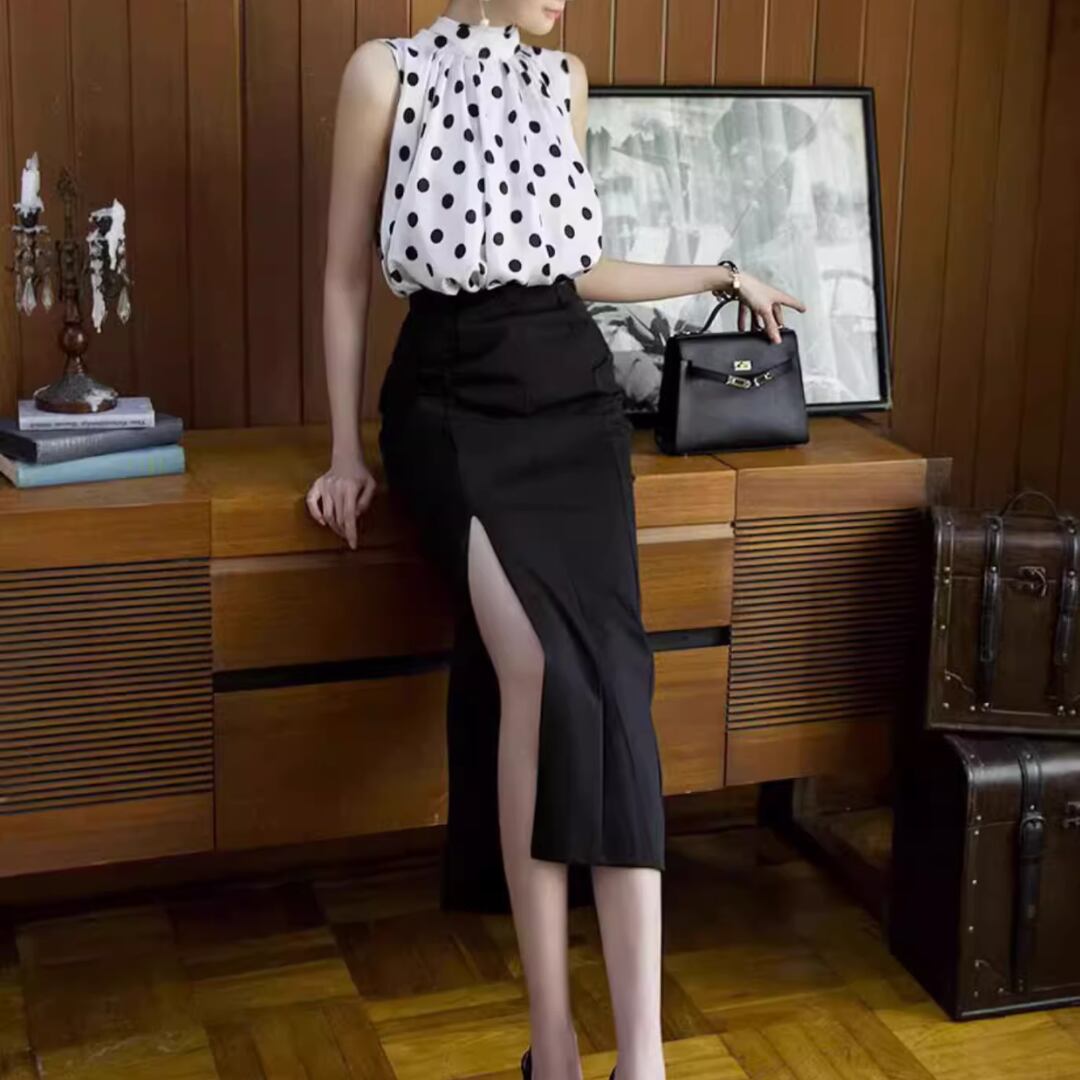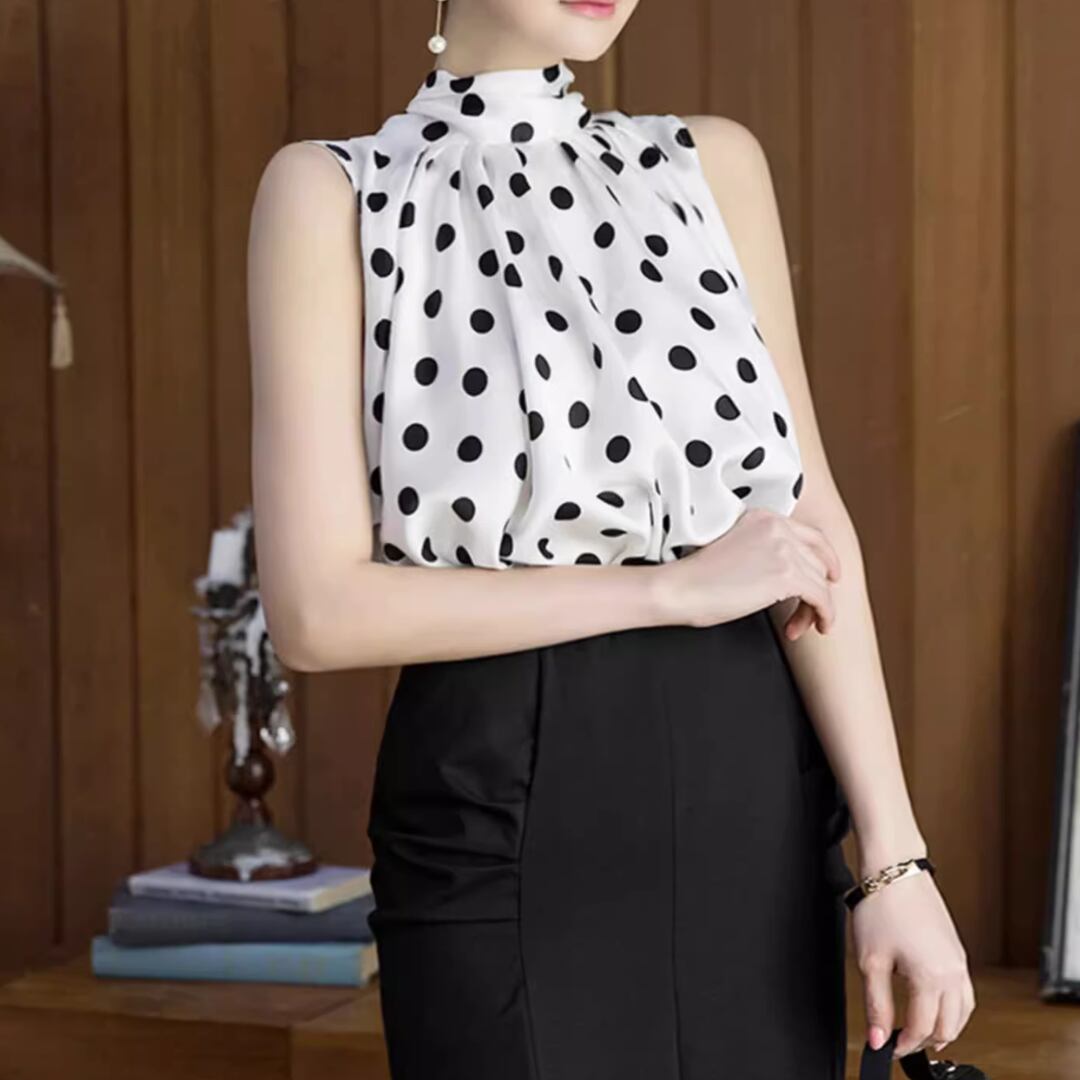 ドットノースリーブブラウス JC0052