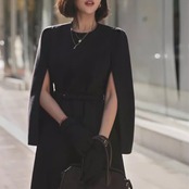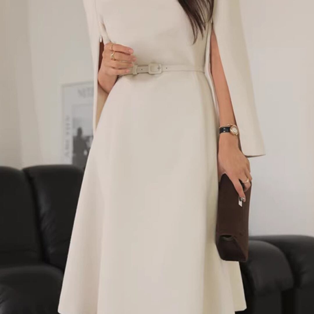ミドル丈ケープウール調ドレス(ベルト付き) JC0068