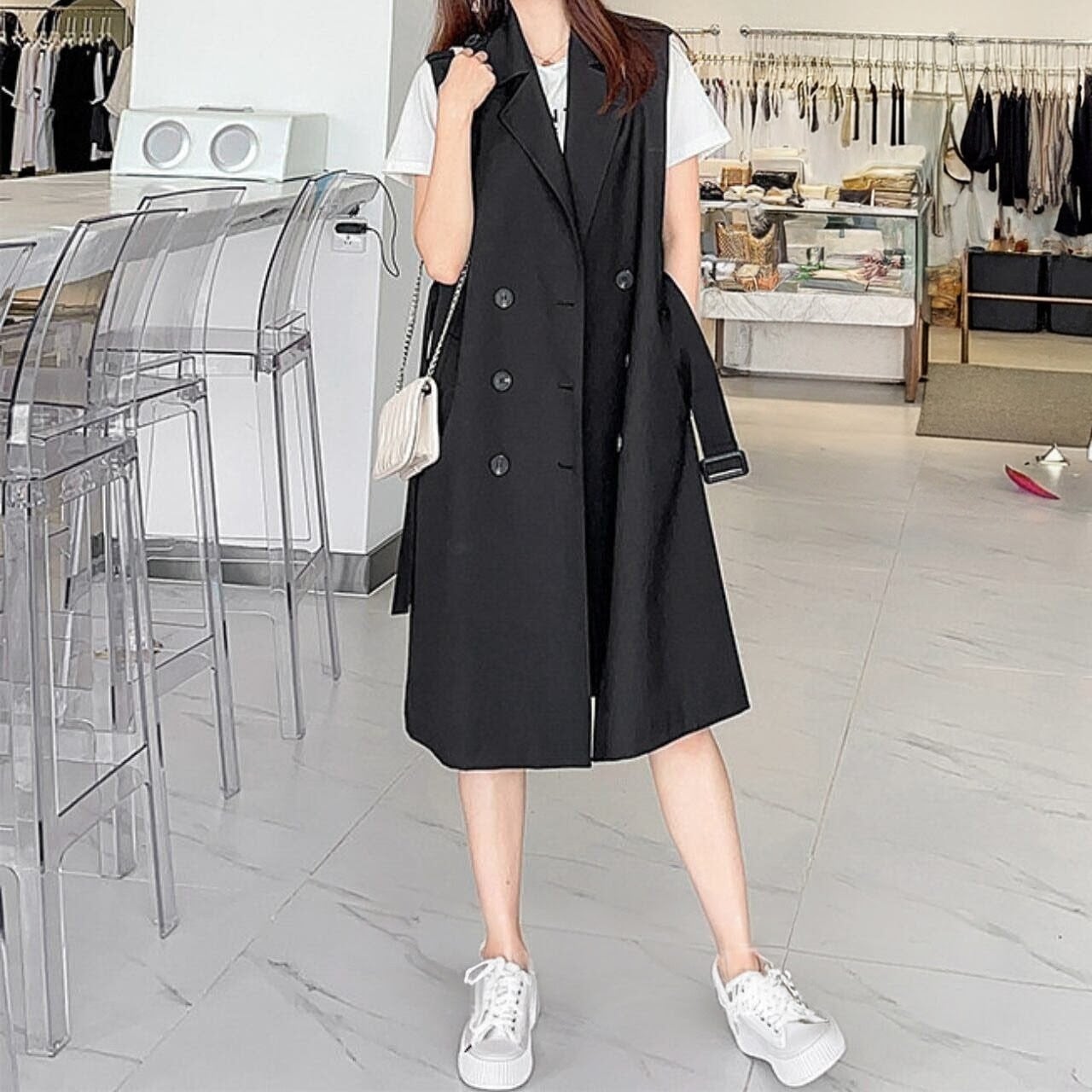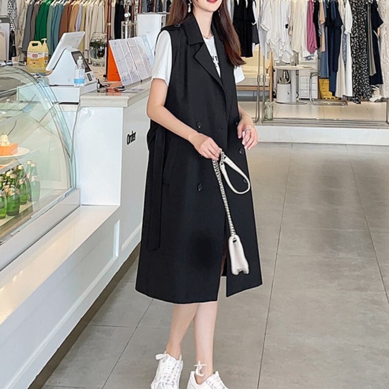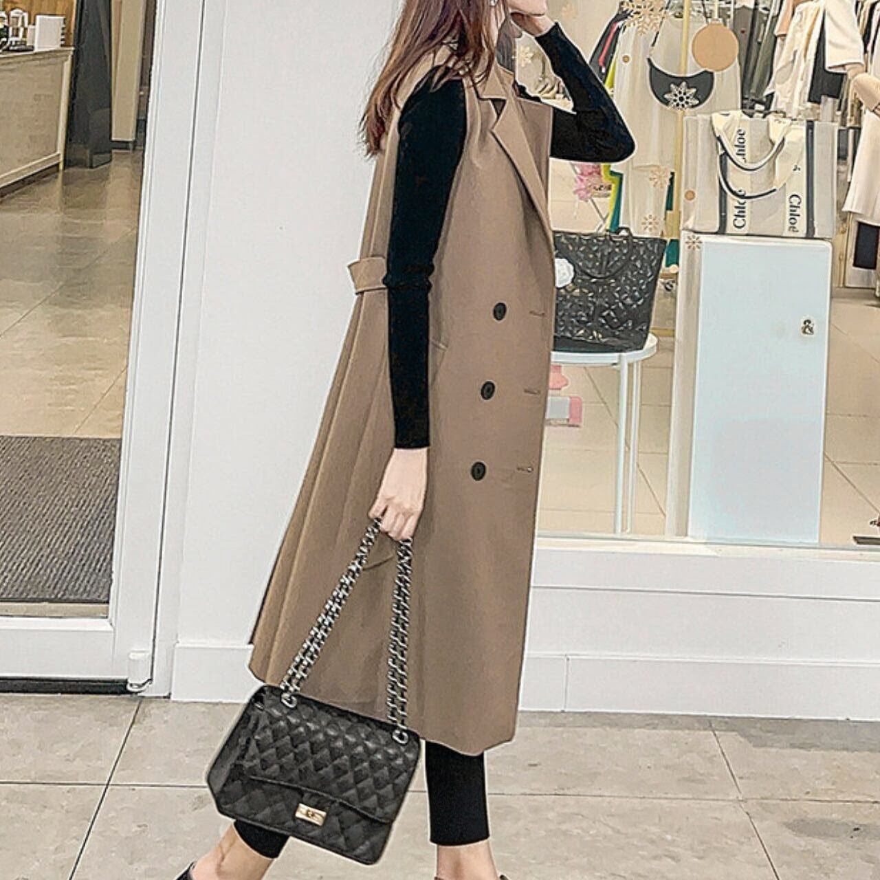 大人っぽいロング丈が上品な印象のジレ。