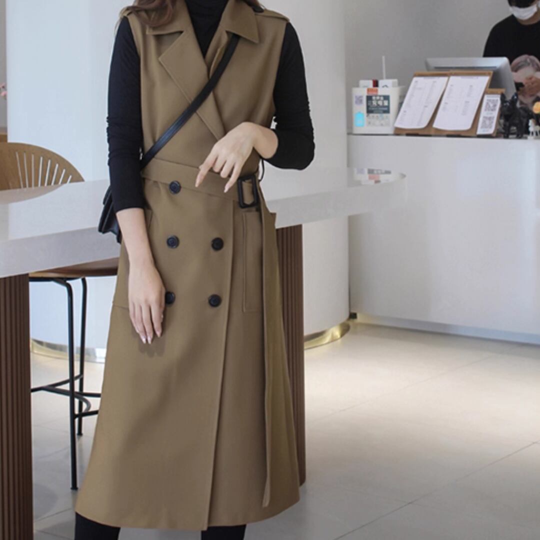 ダブルブレスト ロング丈 ノースリーブ ベスト JC0087