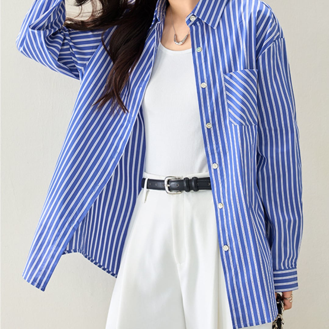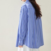 爽やかなストライプ柄が目を引く、長袖シャツ。