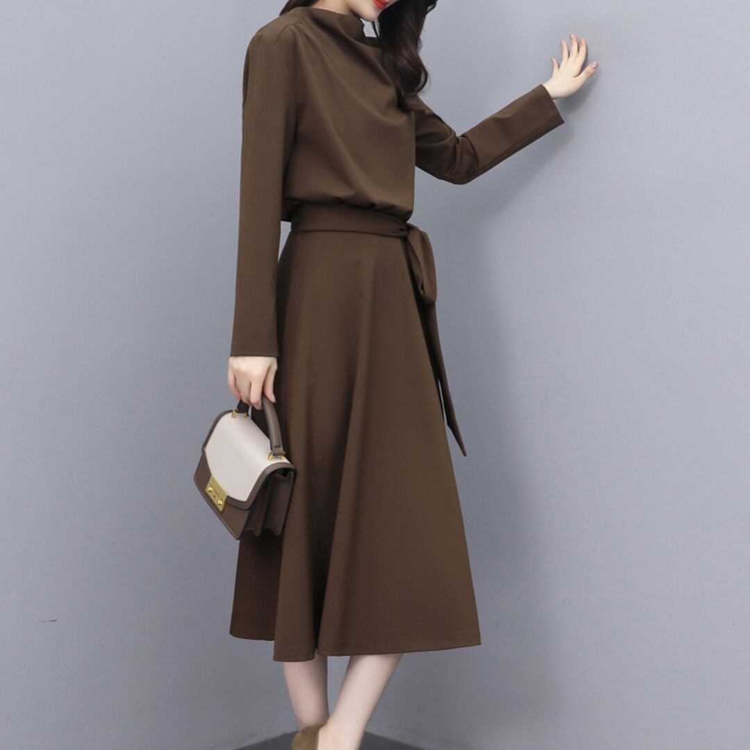 ドレープネックミモレ丈長袖ワンピース JC0091