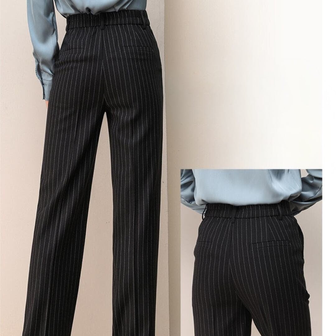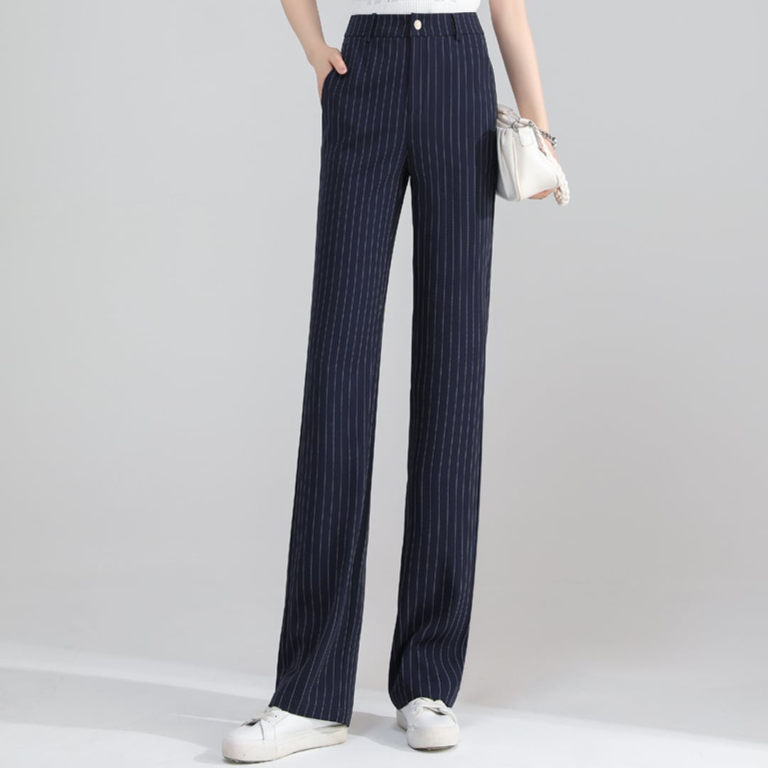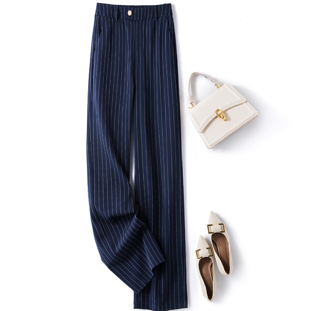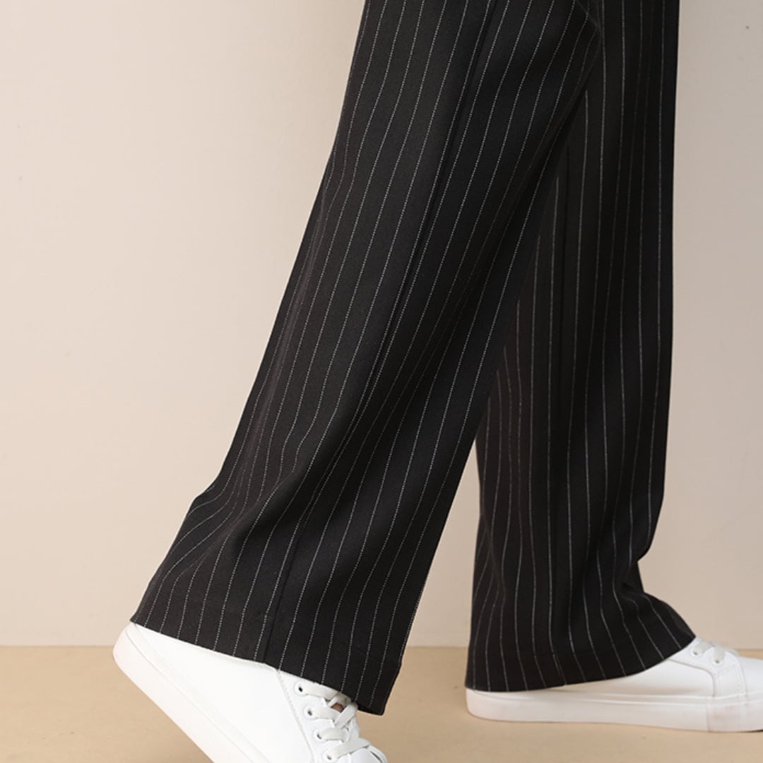 ストライプ柄がスタイリッシュなワイドレッグパンツ。