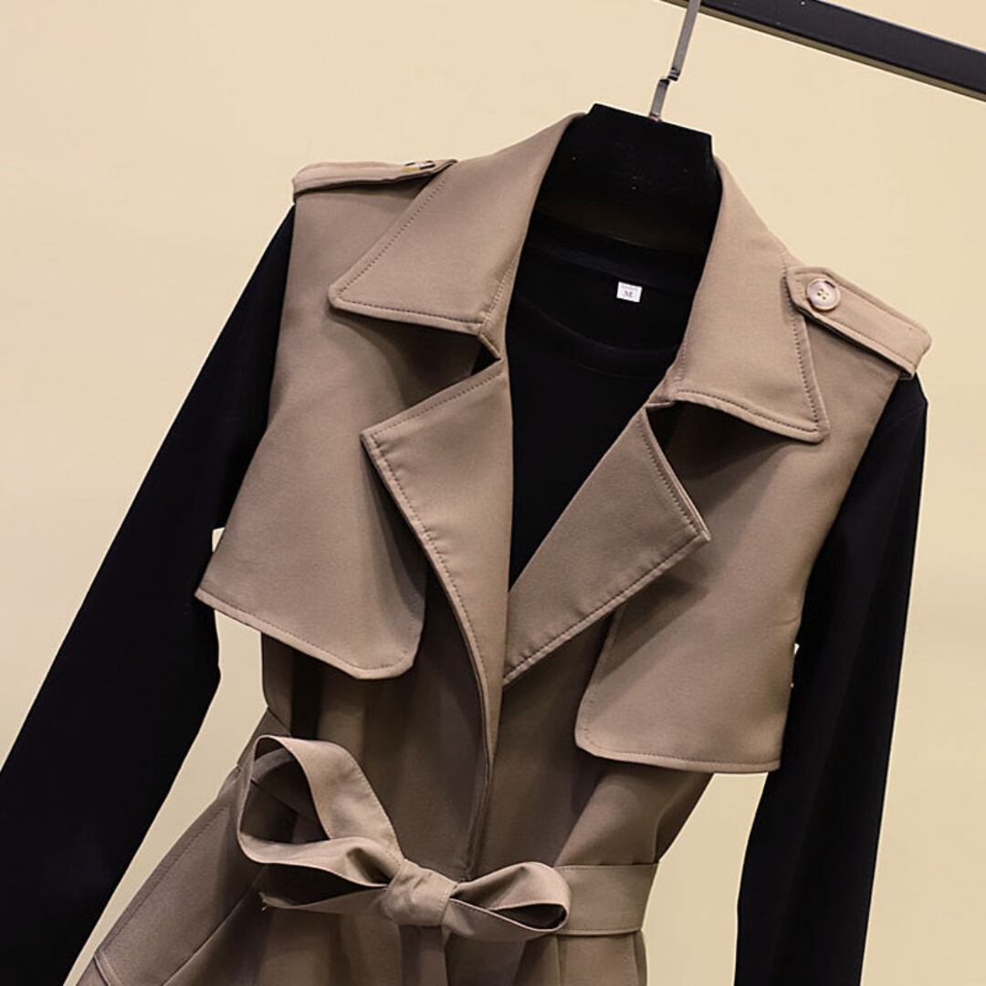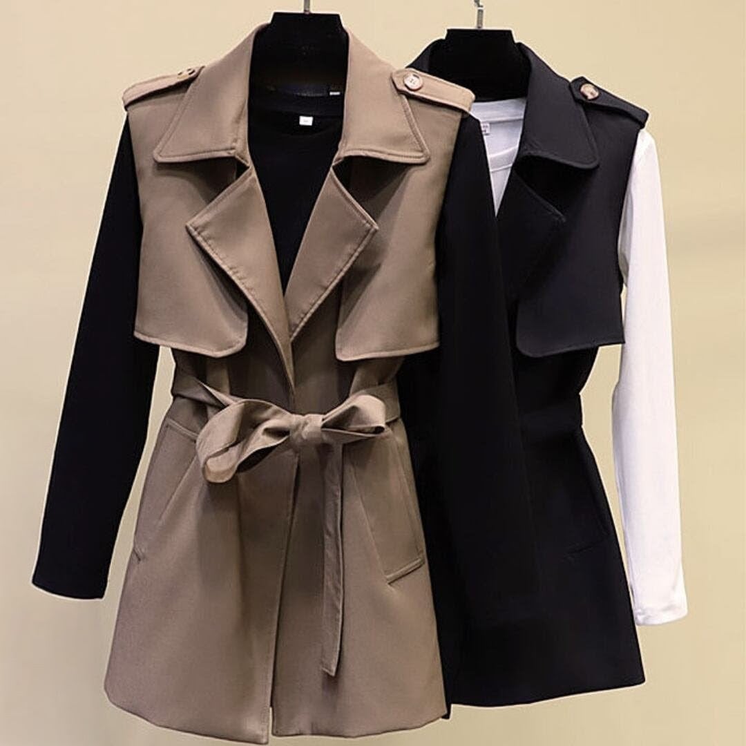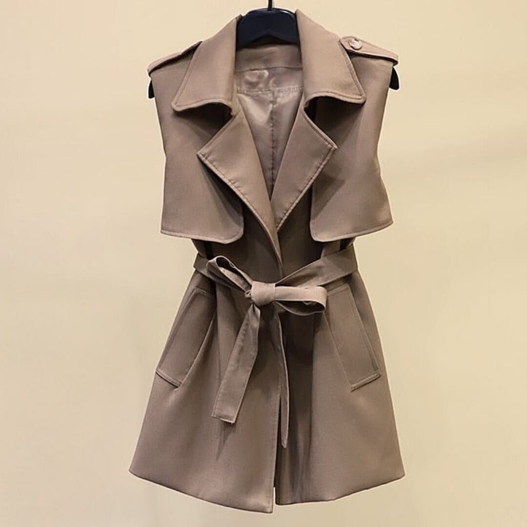 ベルトでウエストマークすることで、スタイルアップ効果も期待できるジレ。