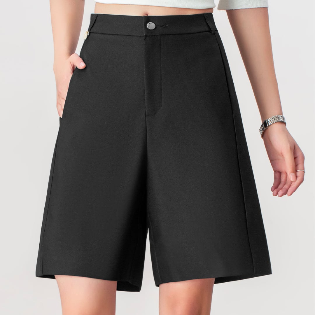 カジュアルにもきれいめにも着こなせ、細見え効果のある台形シルエットのキュロット。
