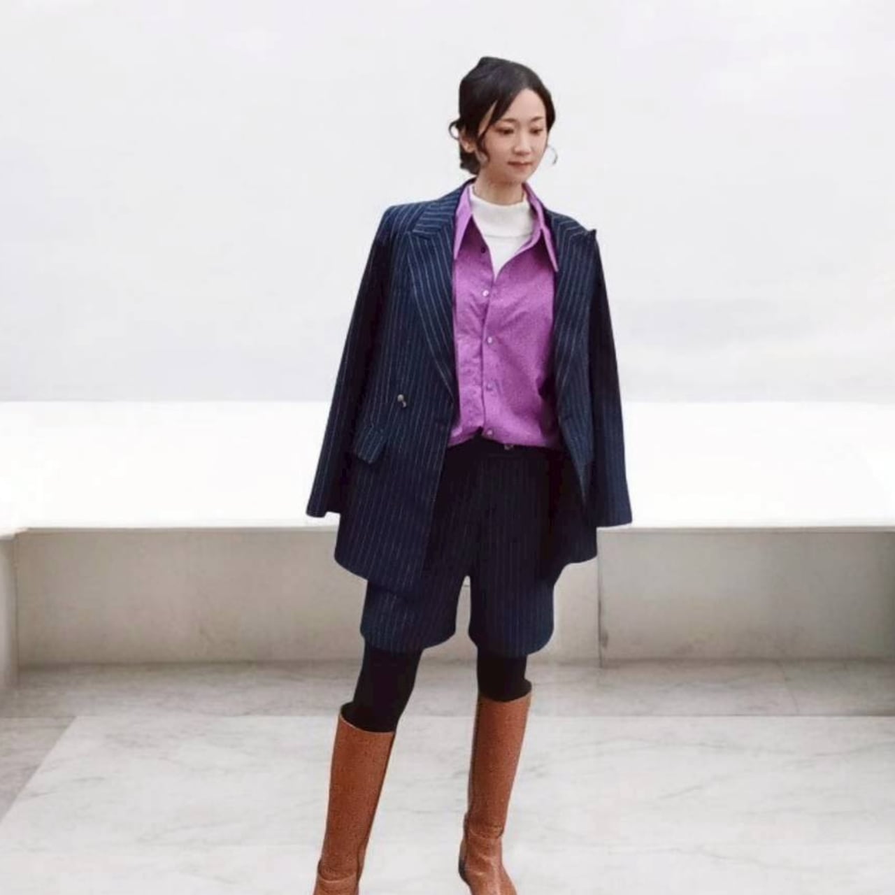 ボタンを閉めてきちんと感を演出したり、少し開けて抜け感を出すなど、様々な表情を楽しめます。
