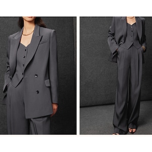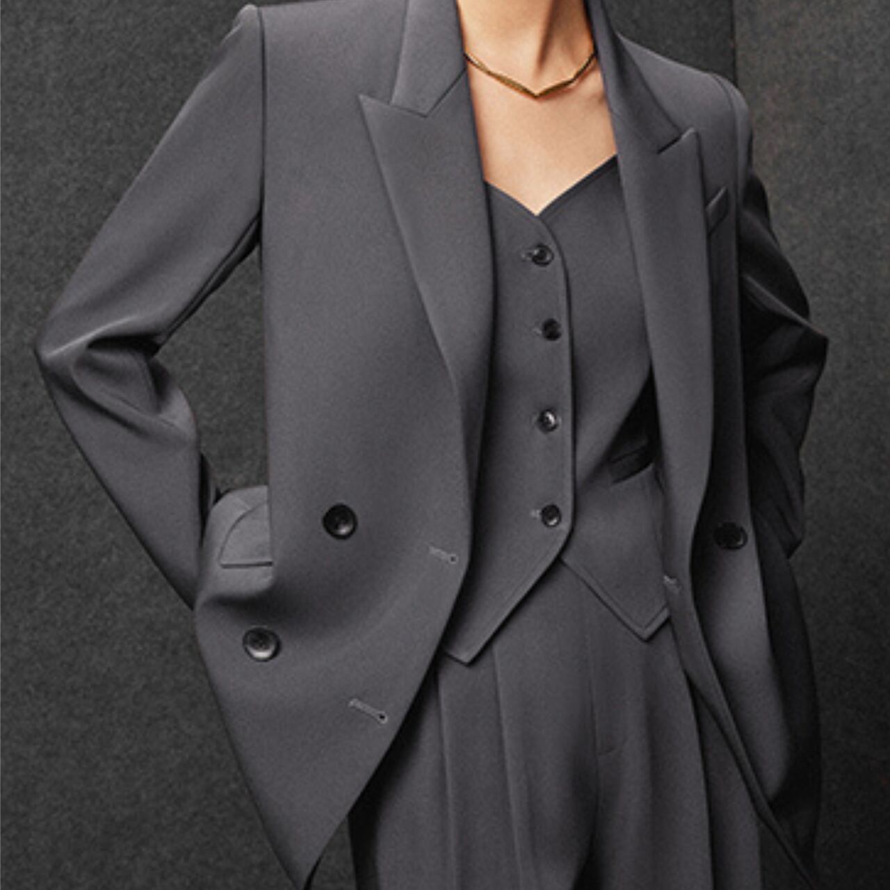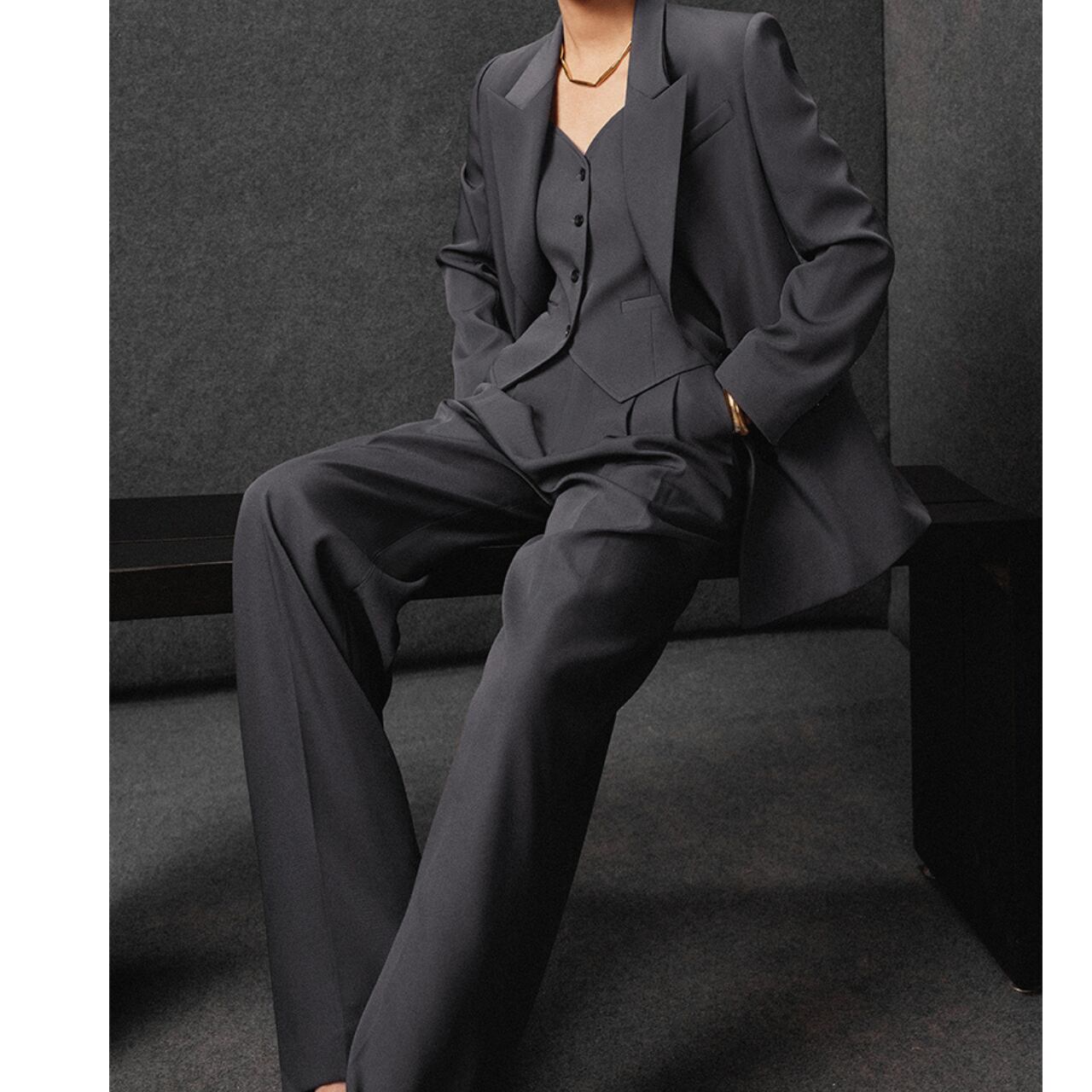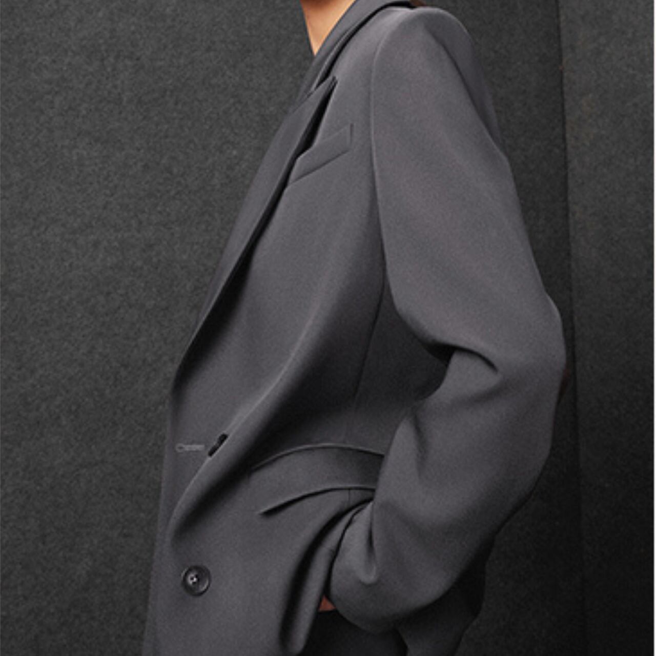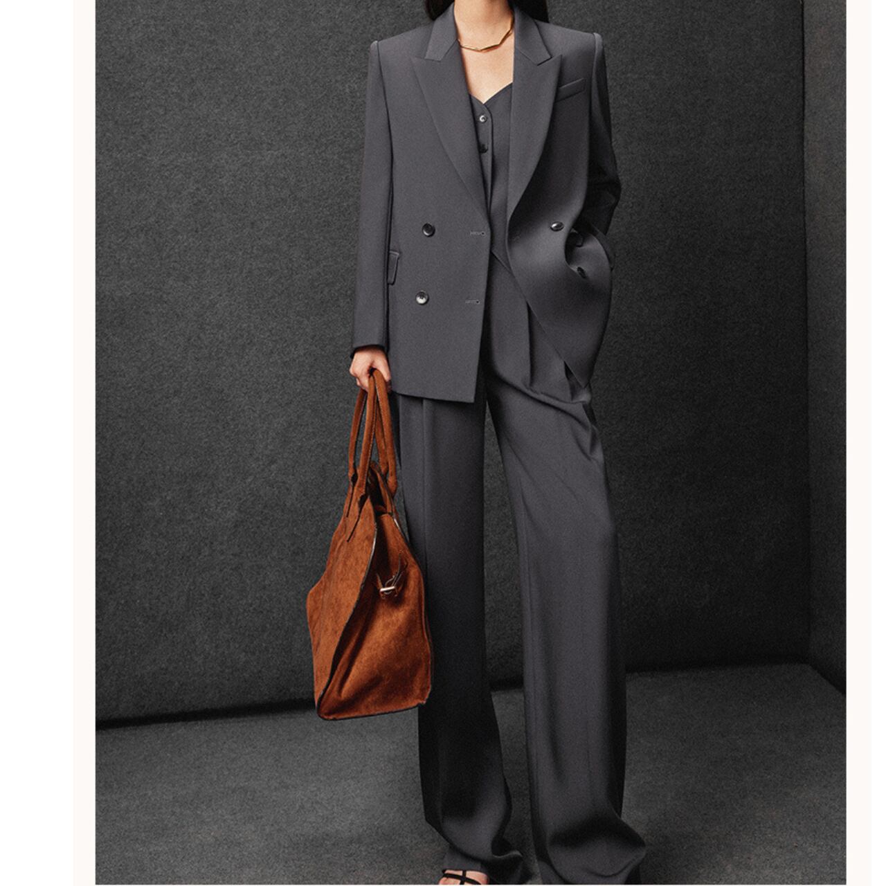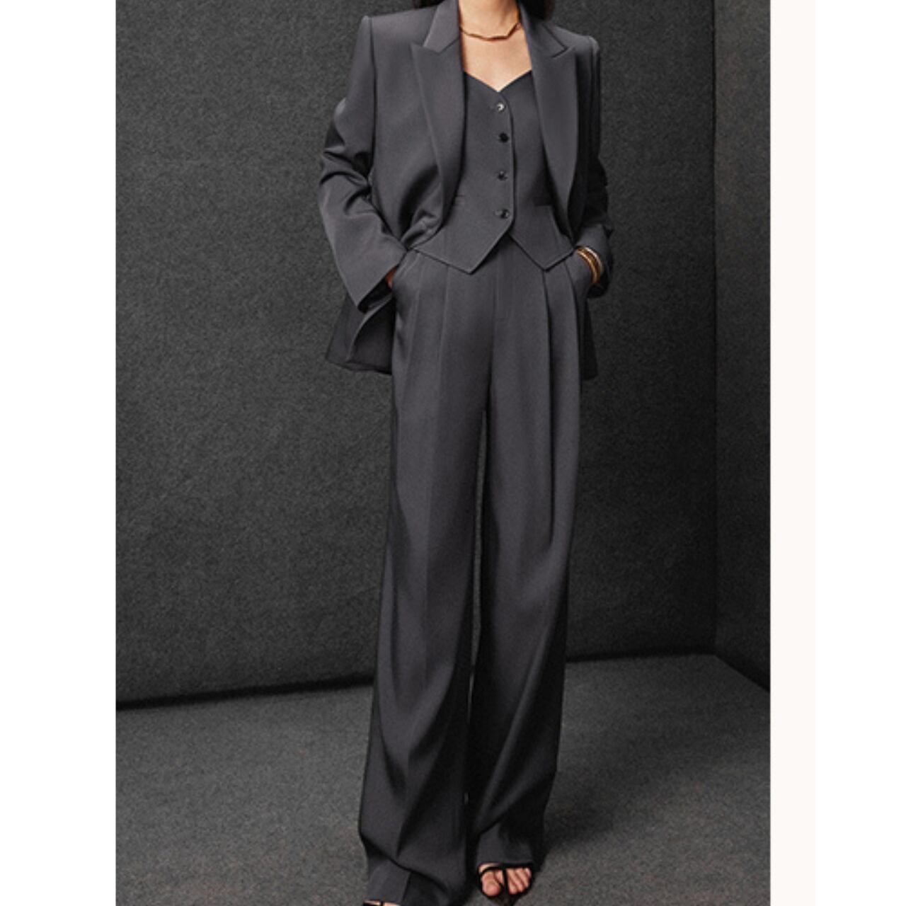 ダブルブレストジャケットとワイドパンツのセットでのご提供です。