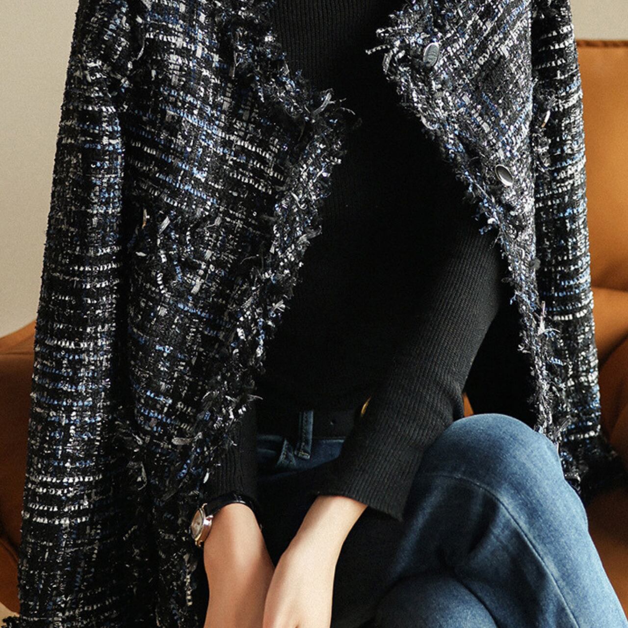 フリンジトリムツイード調ノーカラージャケット JC0168