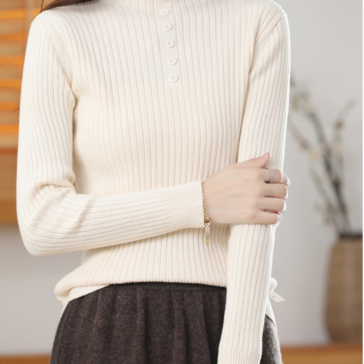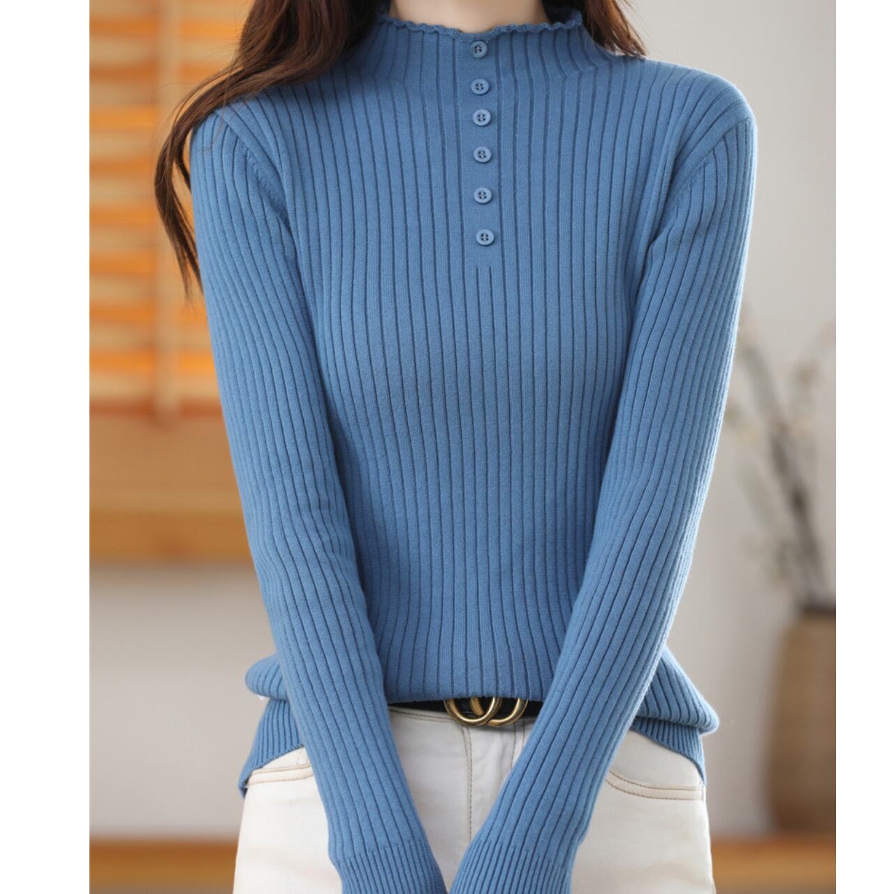 ハイネック リブ編みコットンニットプルオーバー JC0176