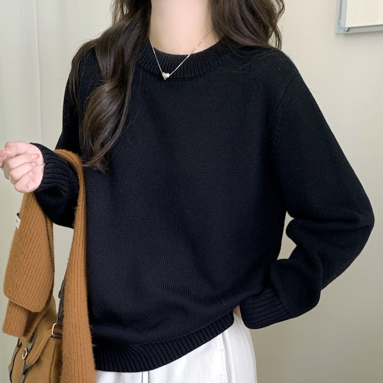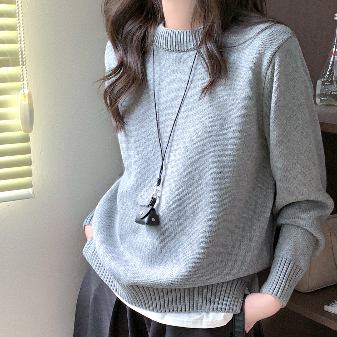 シンプルなデザインで着回し自在なニットプルオーバー。
