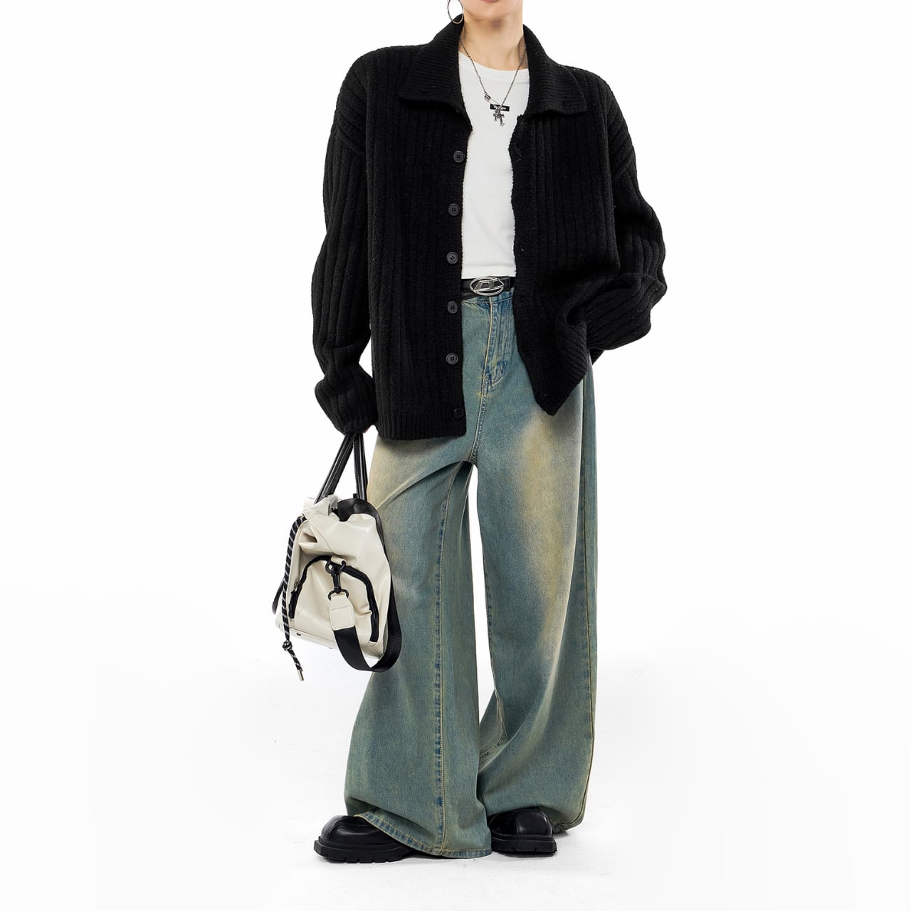 オーバーサイズ 襟付きニットカーディガン JC0182
