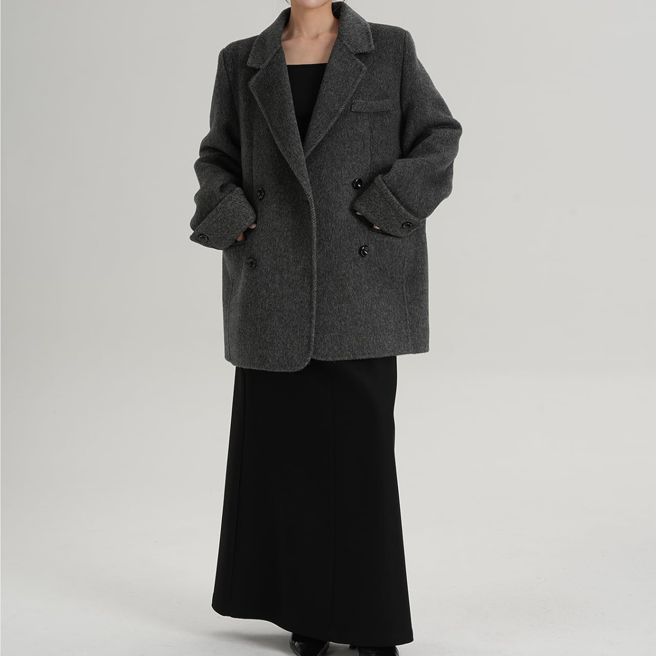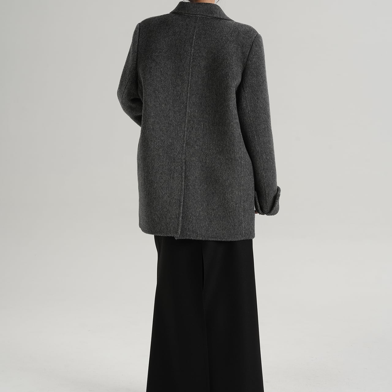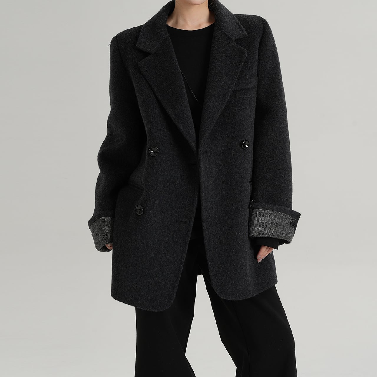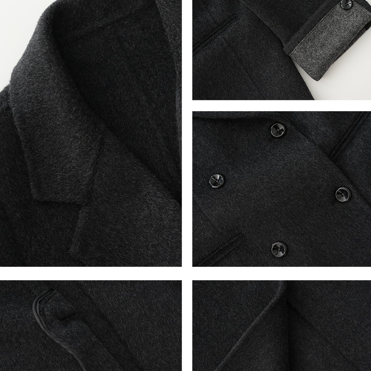 高級感漂うデザインが魅力のターンアップスリーブミドル丈コート。