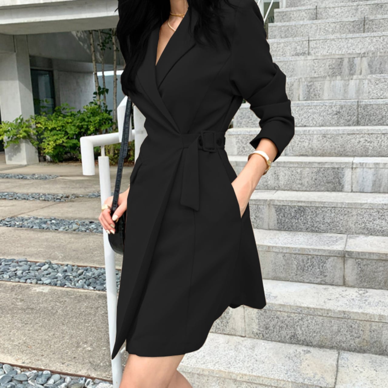 シンプルながらも存在感のあるラップ風ワンピース。Vネックのデザインが、デコルテを美しく見せてくれます。