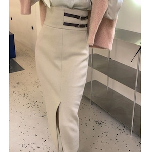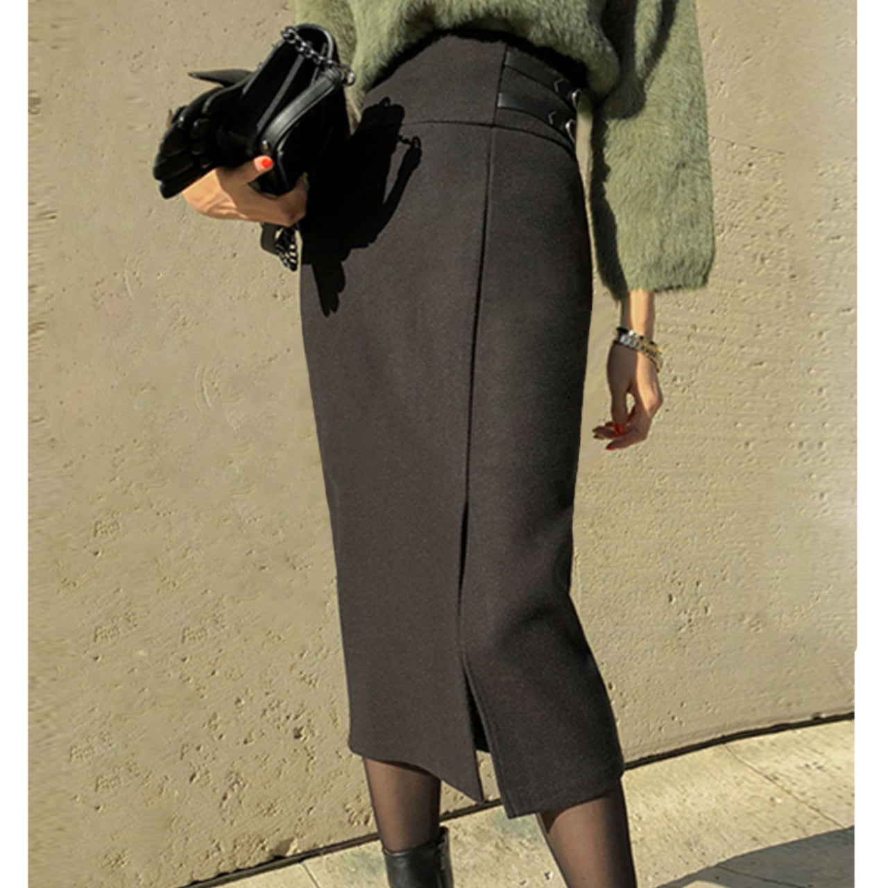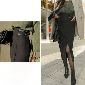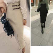 エレガントなシルエットが美しい、ハイウエストスリットタイトスカート。