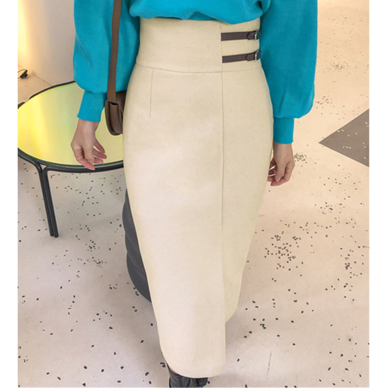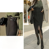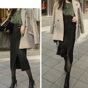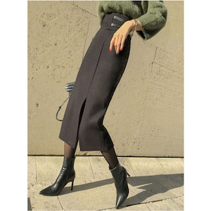 やや深めのスリットデザインが魅力で、スタイルを引き立てる一枚です。