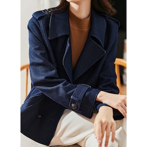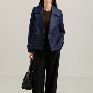 ダブルブレストショート丈デニム調ジャケット JC0204