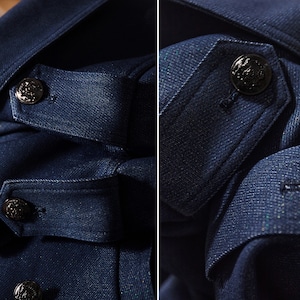 ノッチドラペルが顔周りをすっきりと見せてくれます。