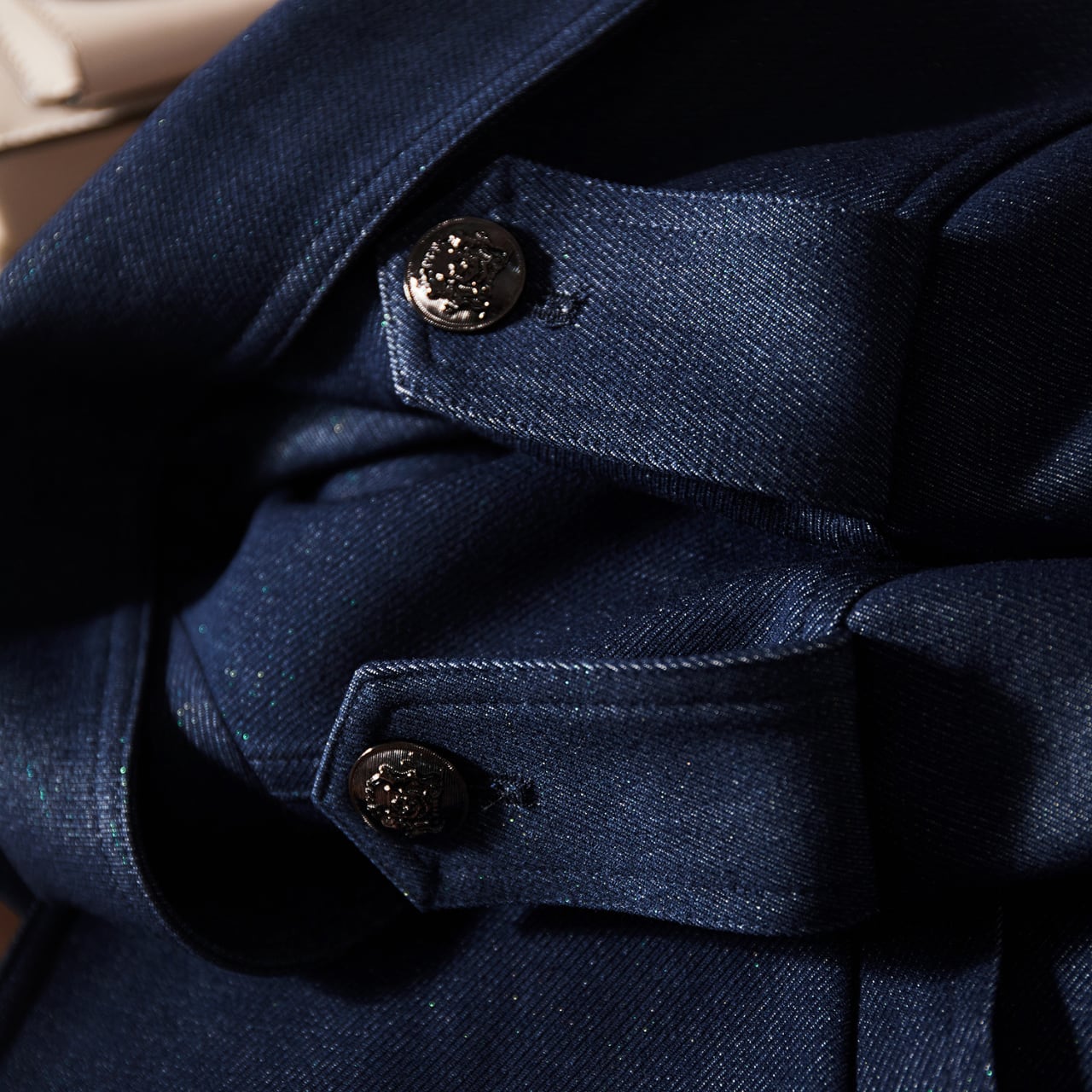 ダブルブレストデザインが上品な印象を与えてくれるジャケット。