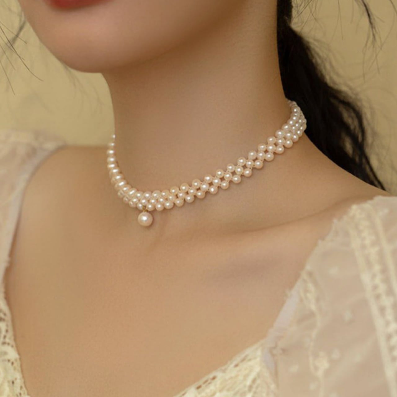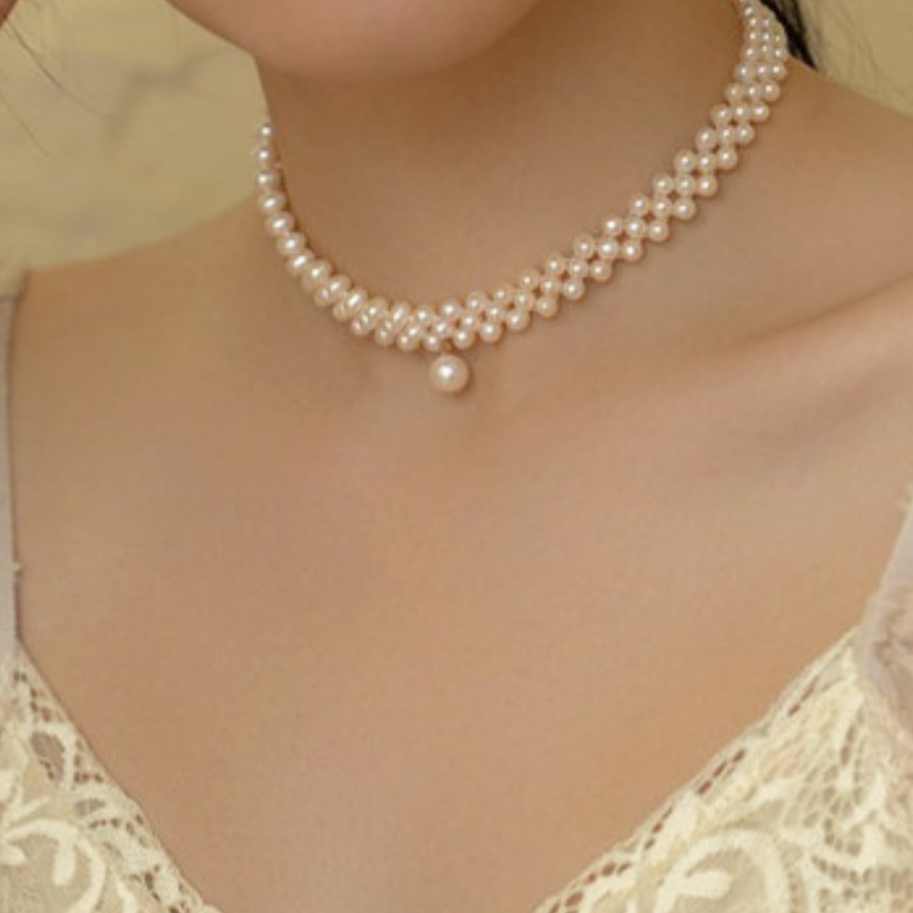 2連のパールが織りなす繊細なデザイン。