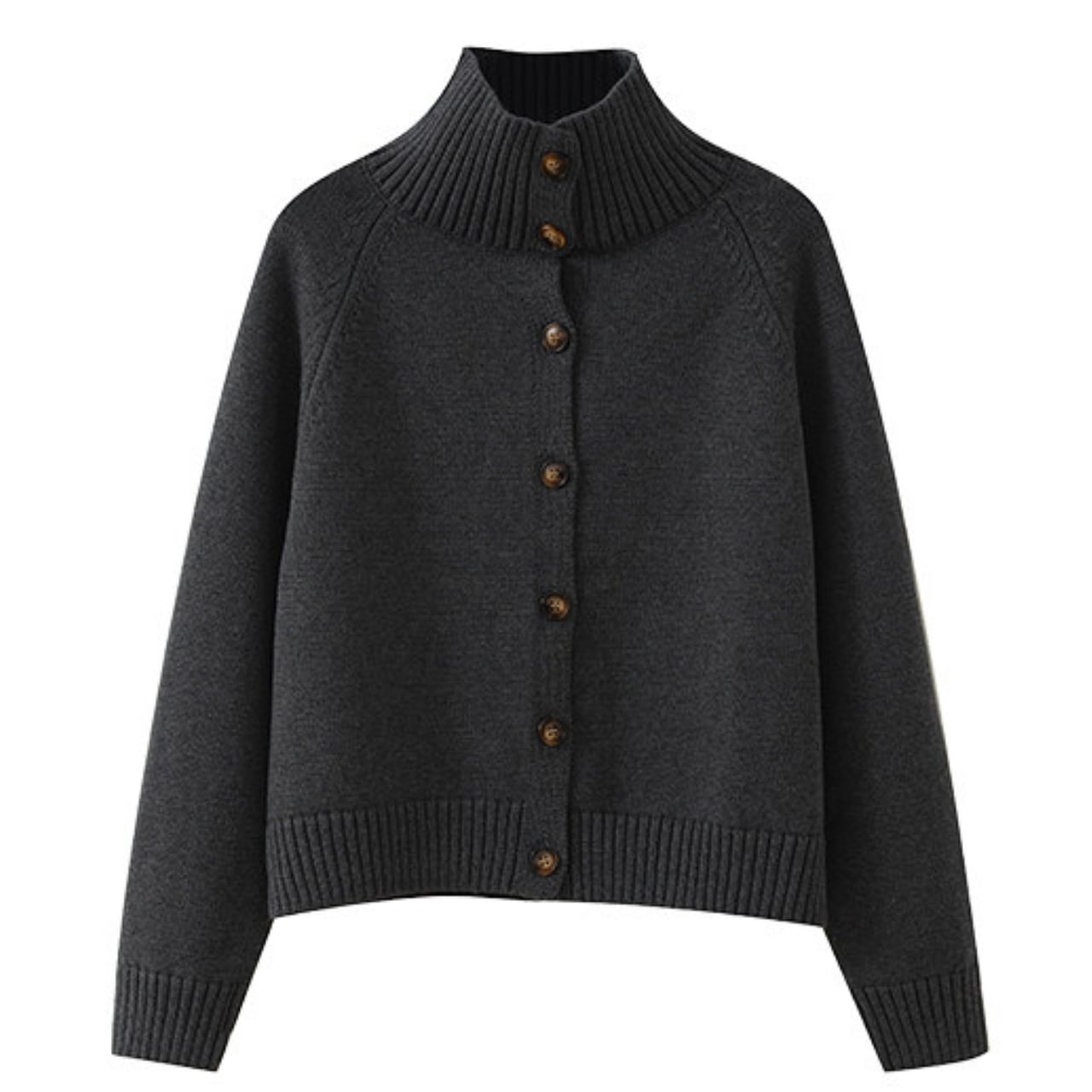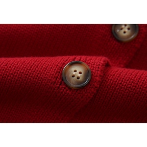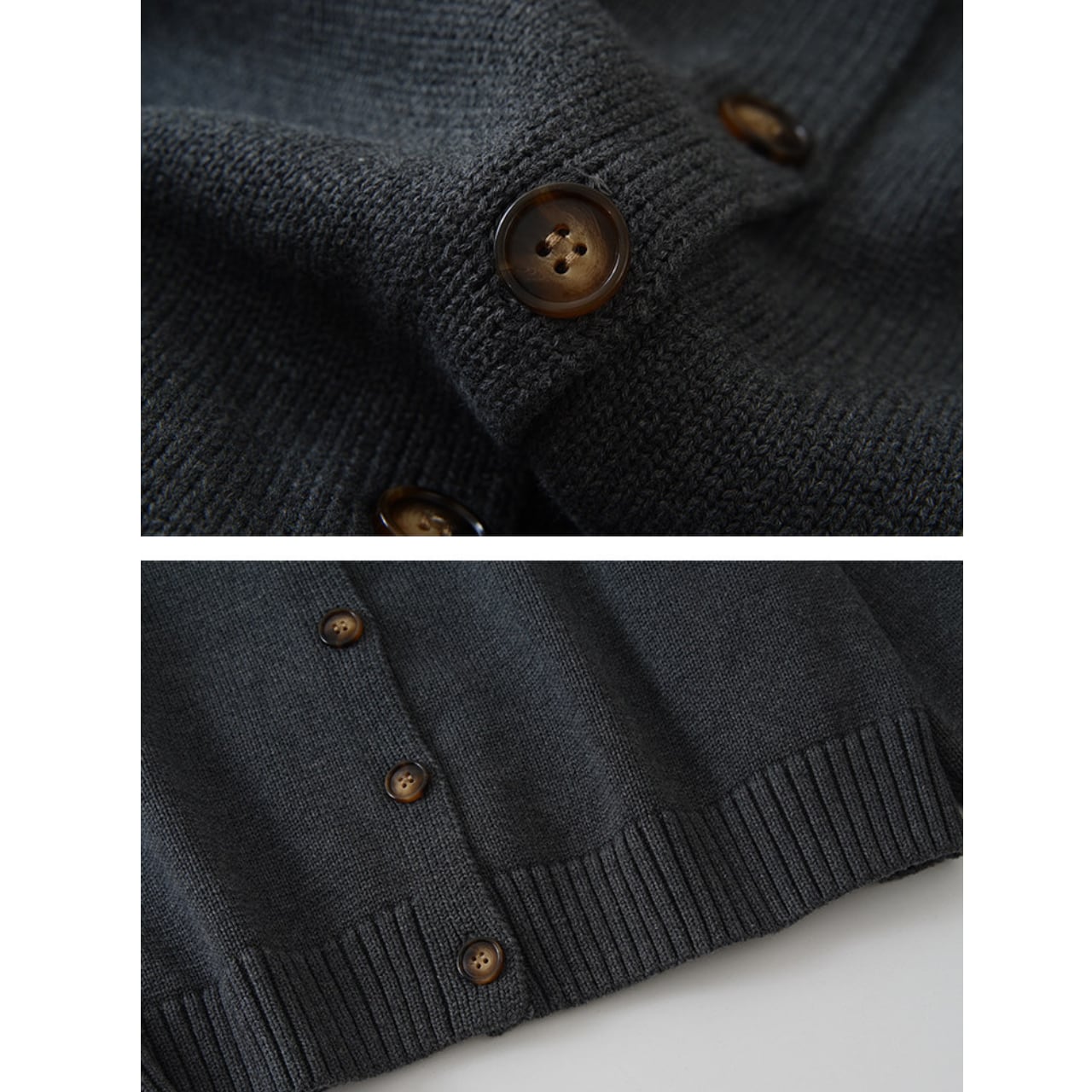 シンプルなデザインの中に、フロントボタンが映えるニットカーディガン。