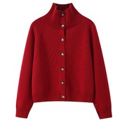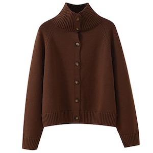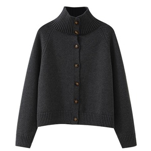綿ニットドロップショルダーハイネックカーディガン JC0214