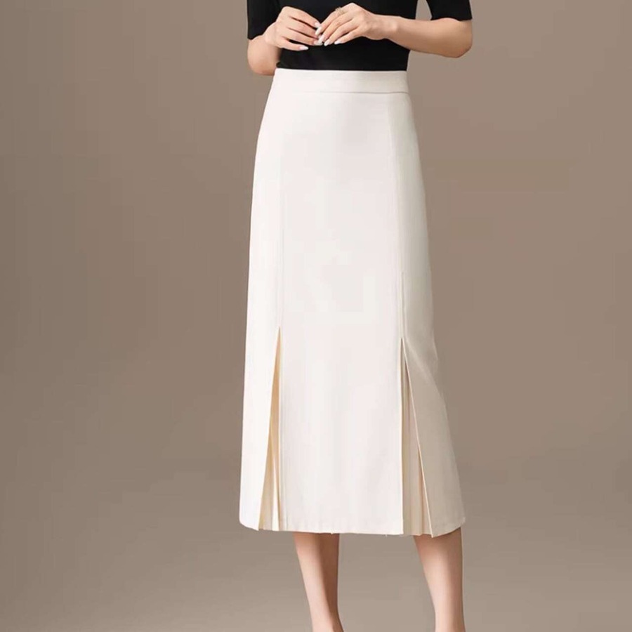 スリットプリーツスカート(オフ白、グレー、黒、茶の4色展開)