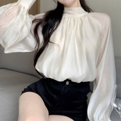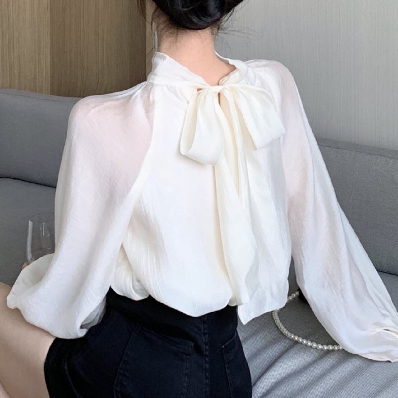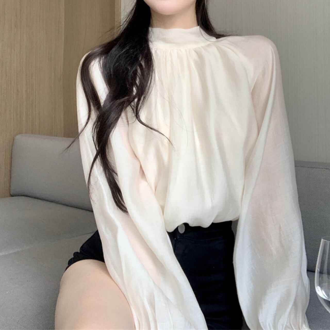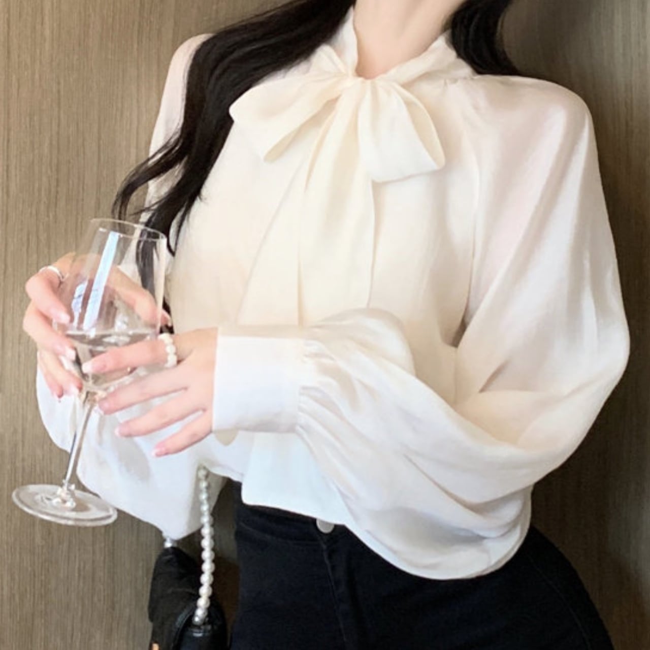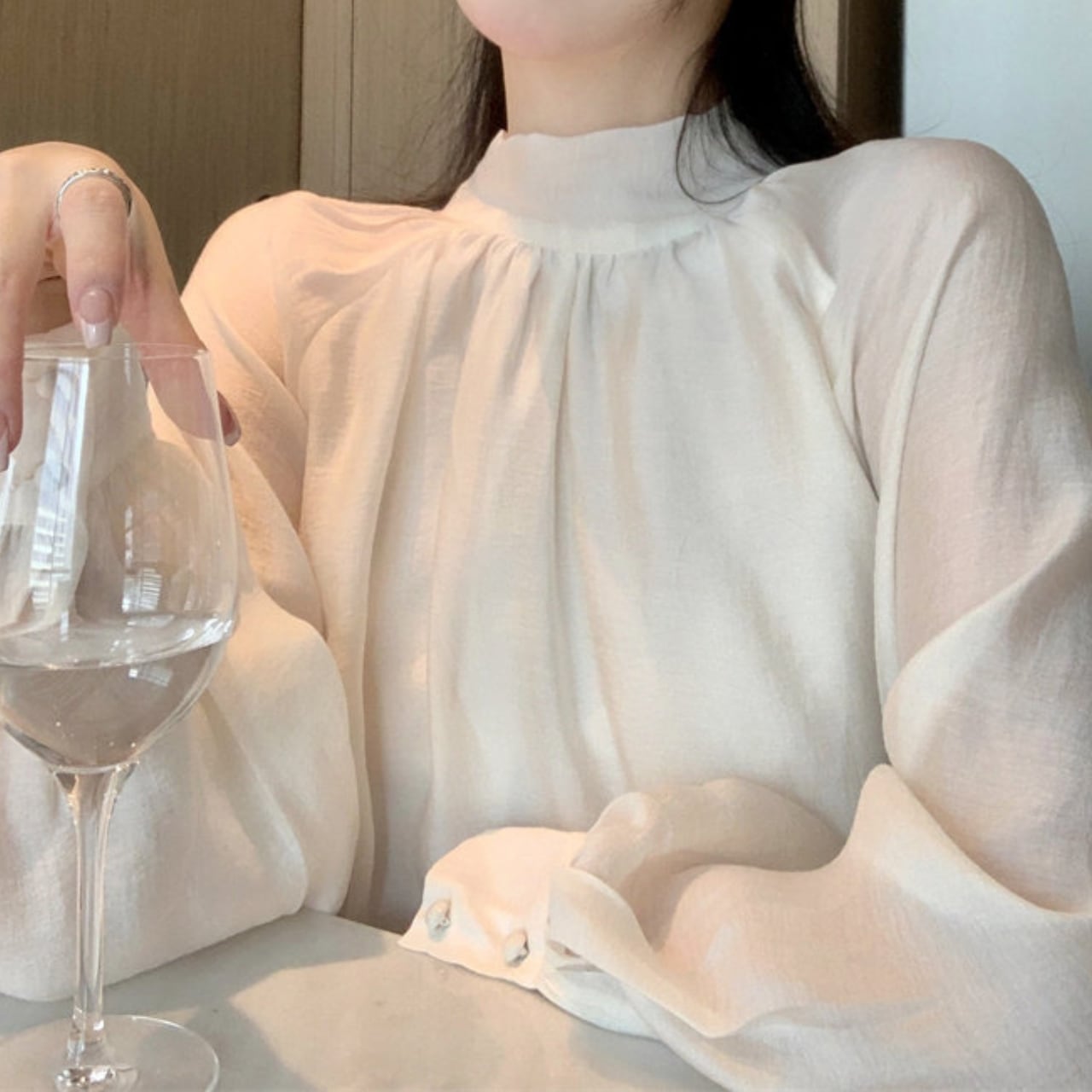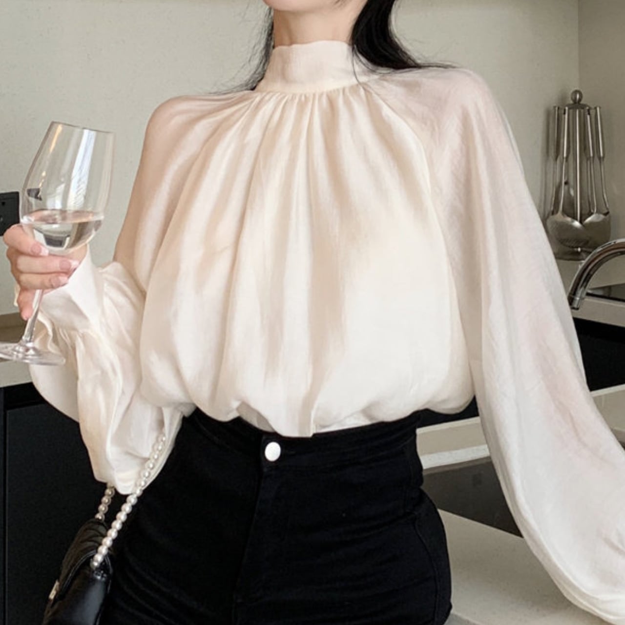 袖のふんわりとしたシルエットとエアリーな雰囲気がフェミニンなブラウス。