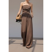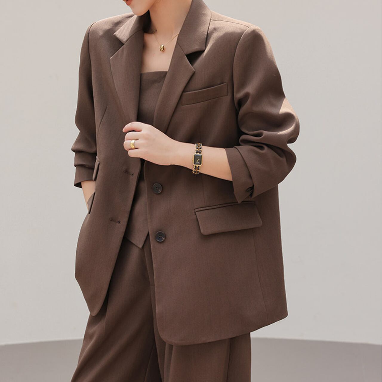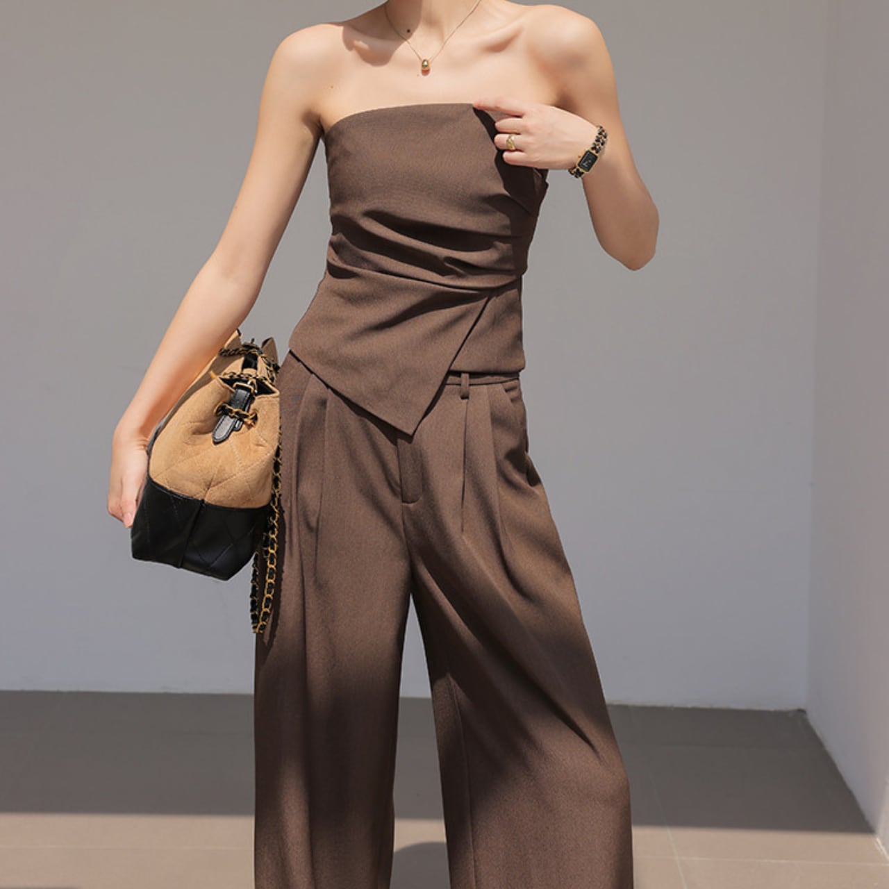 さっと羽織るだけで、こなれ感を演出できます。程よい丈感で、スタイルアップ効果も期待できます。同素材同色のパンツとチューブトップのスリーピースで着用いただける御品です。