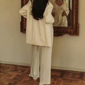 ストライプ柄シングルブレストゆったりジャケット JC0237