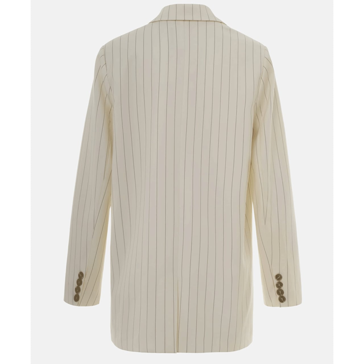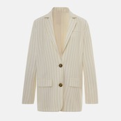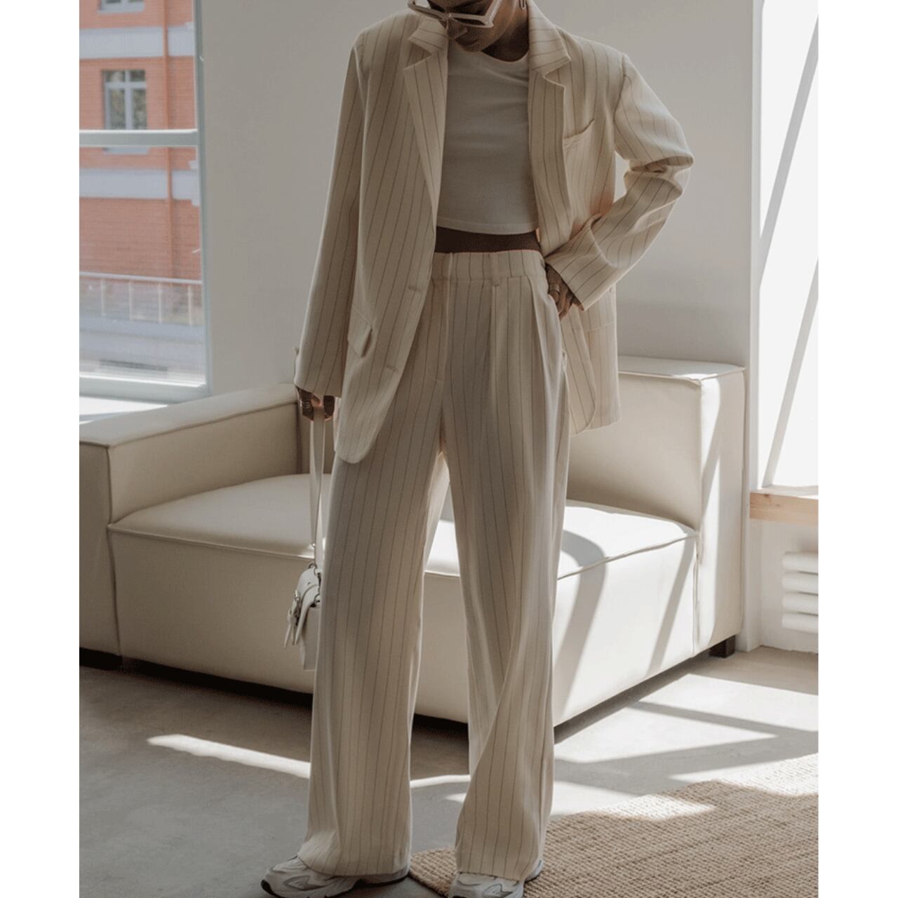 シンプルなインナーに羽織るだけで、こなれ感のあるコーディネートが完成するジャケット。ストライプ柄が縦のラインを強調し、スタイルアップ効果も期待できます。