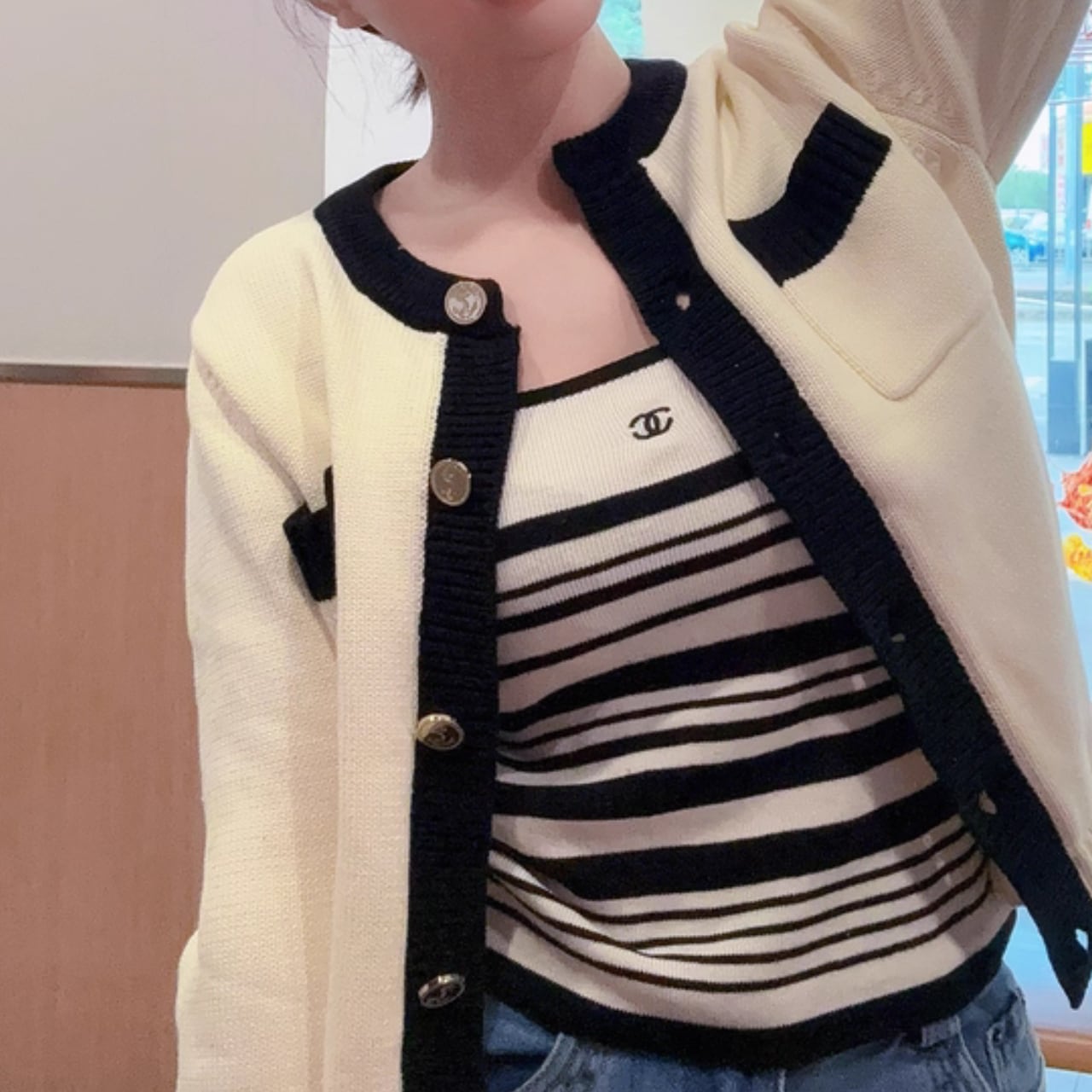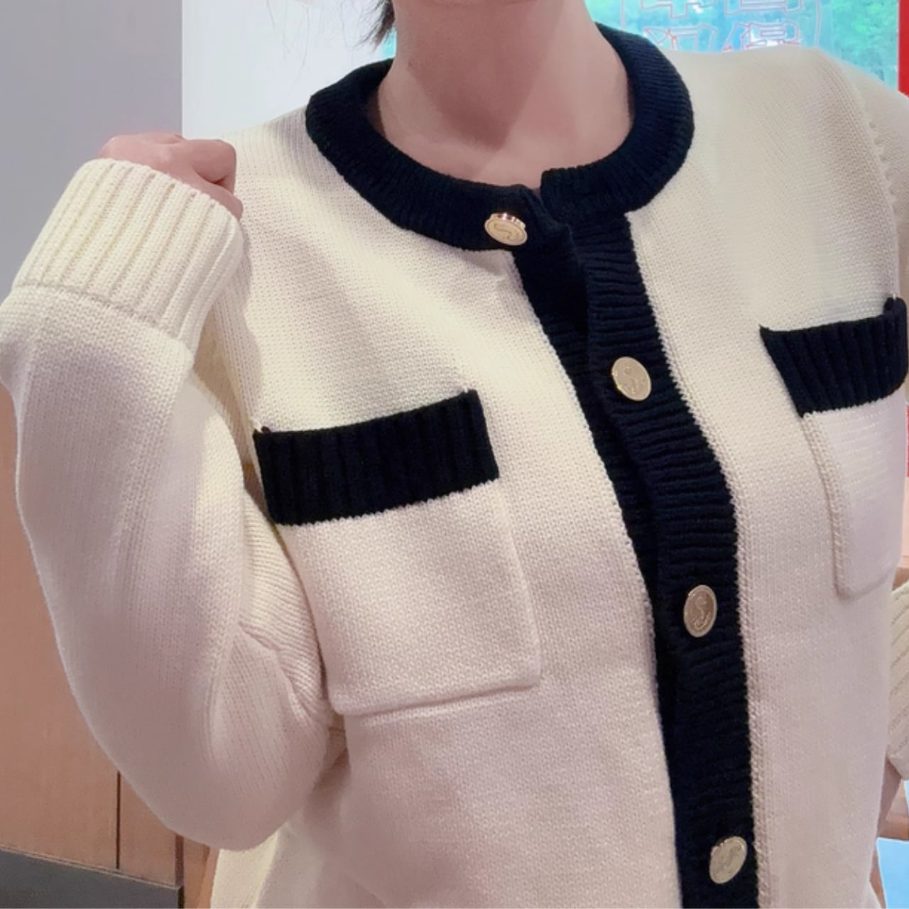 バイカラー綿ニットカーディガン JC0232