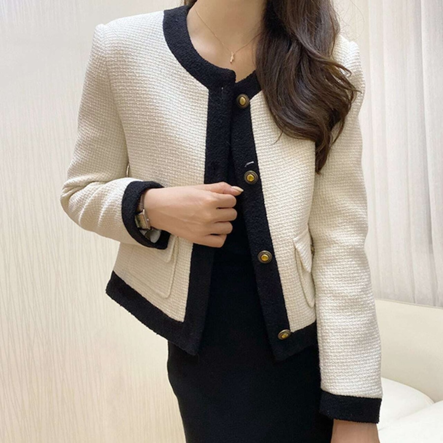 バイカラーノーカラーツイード調ジャケット