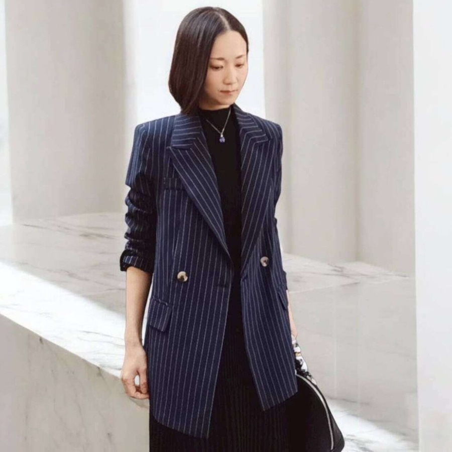 洗練みえするストライプジャケット合わせもおすすめ!