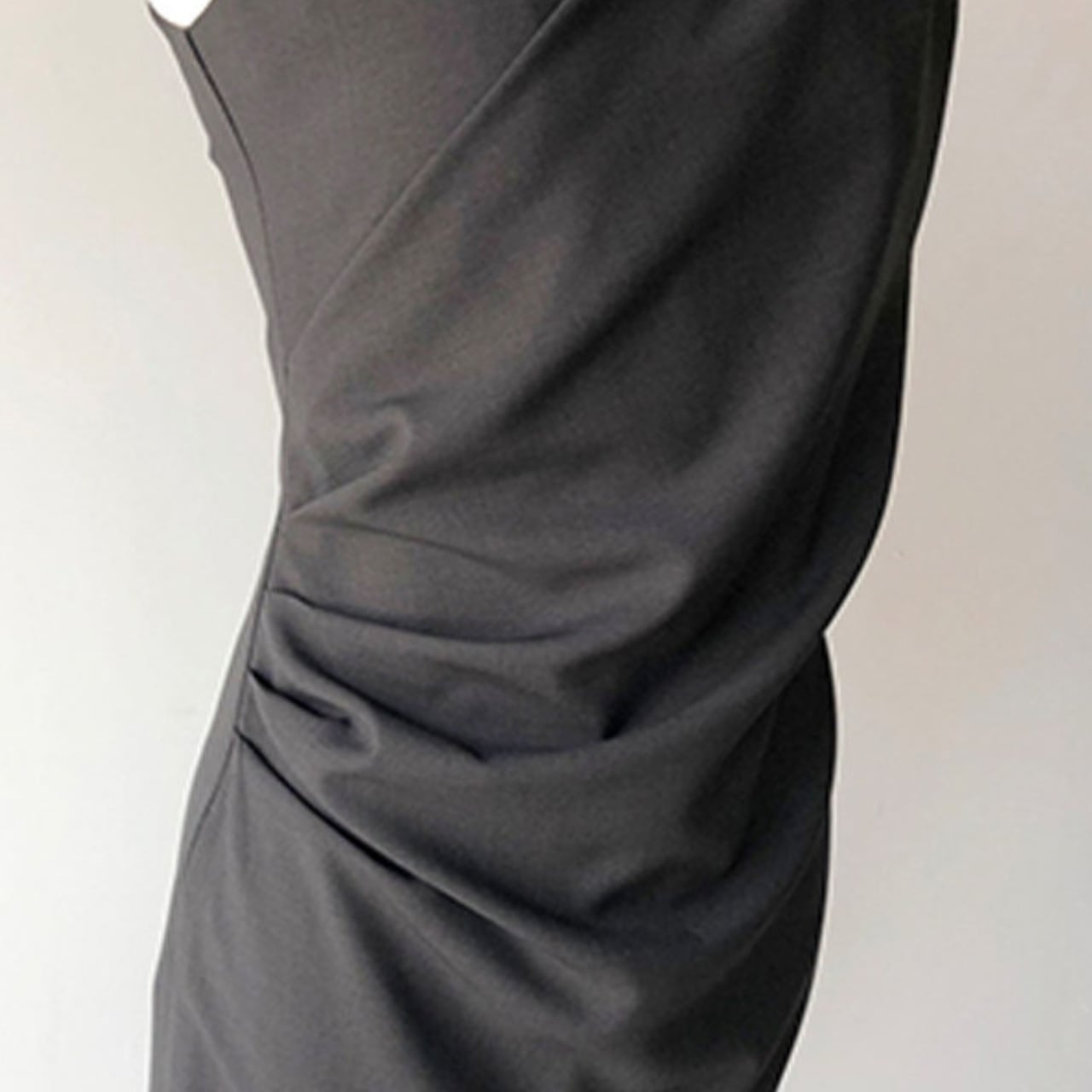 アシンメトリーなデザインが目を引くワンピース。
