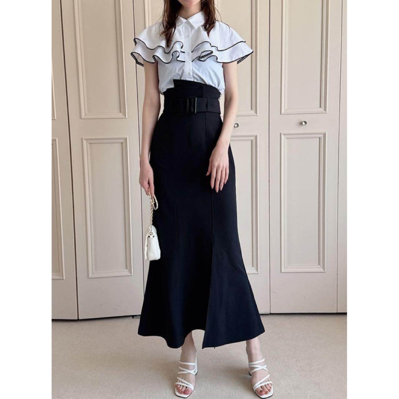 裾にかけて広がるマーメイドラインが、女性らしいシルエットを演出します。
