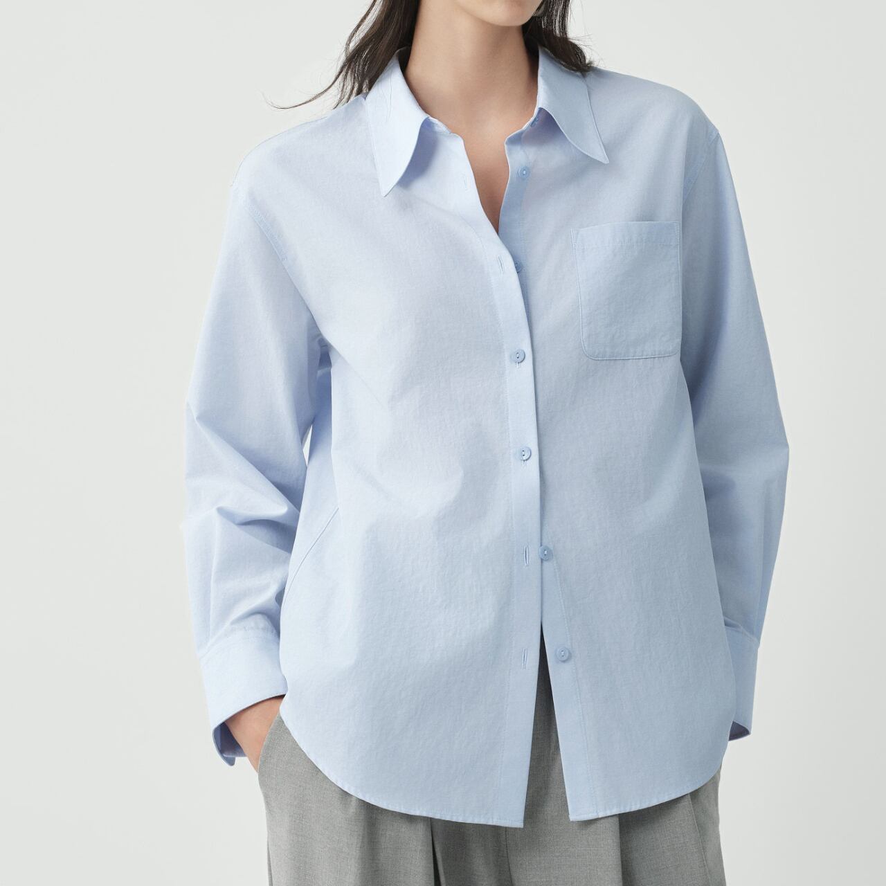 カジュアルにもオフィスにも合わせやすいシャツです。