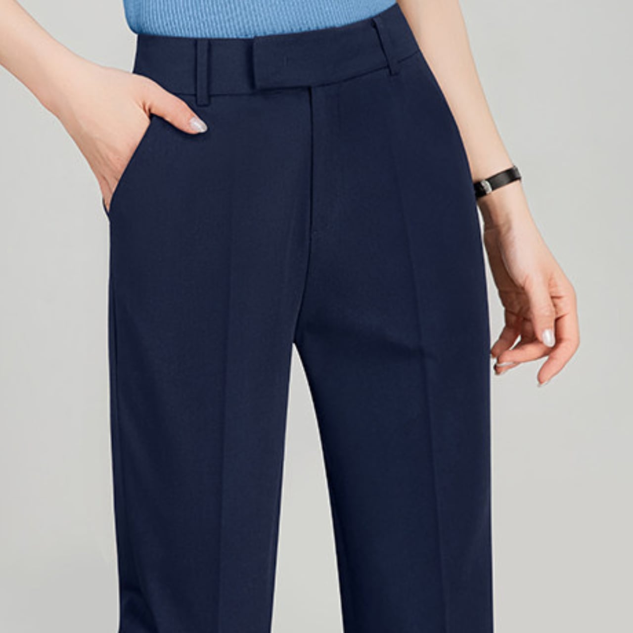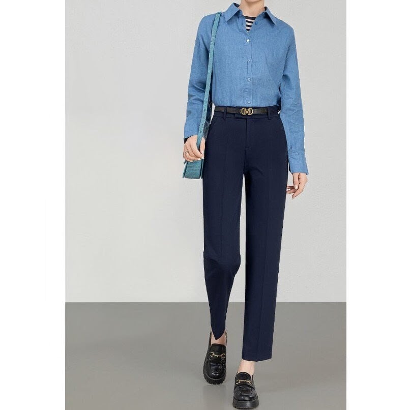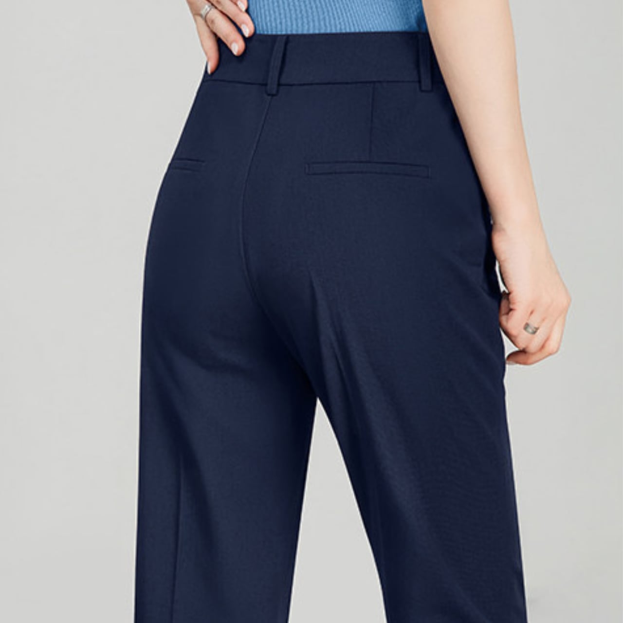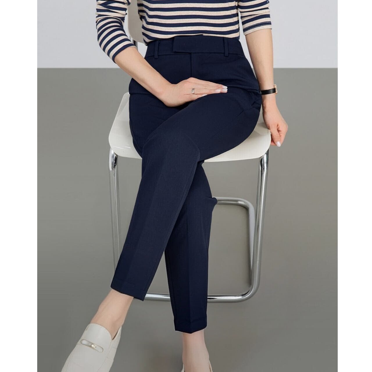 ハイウエスト&センタープレス入りでスタイルアップ効果も期待できます。