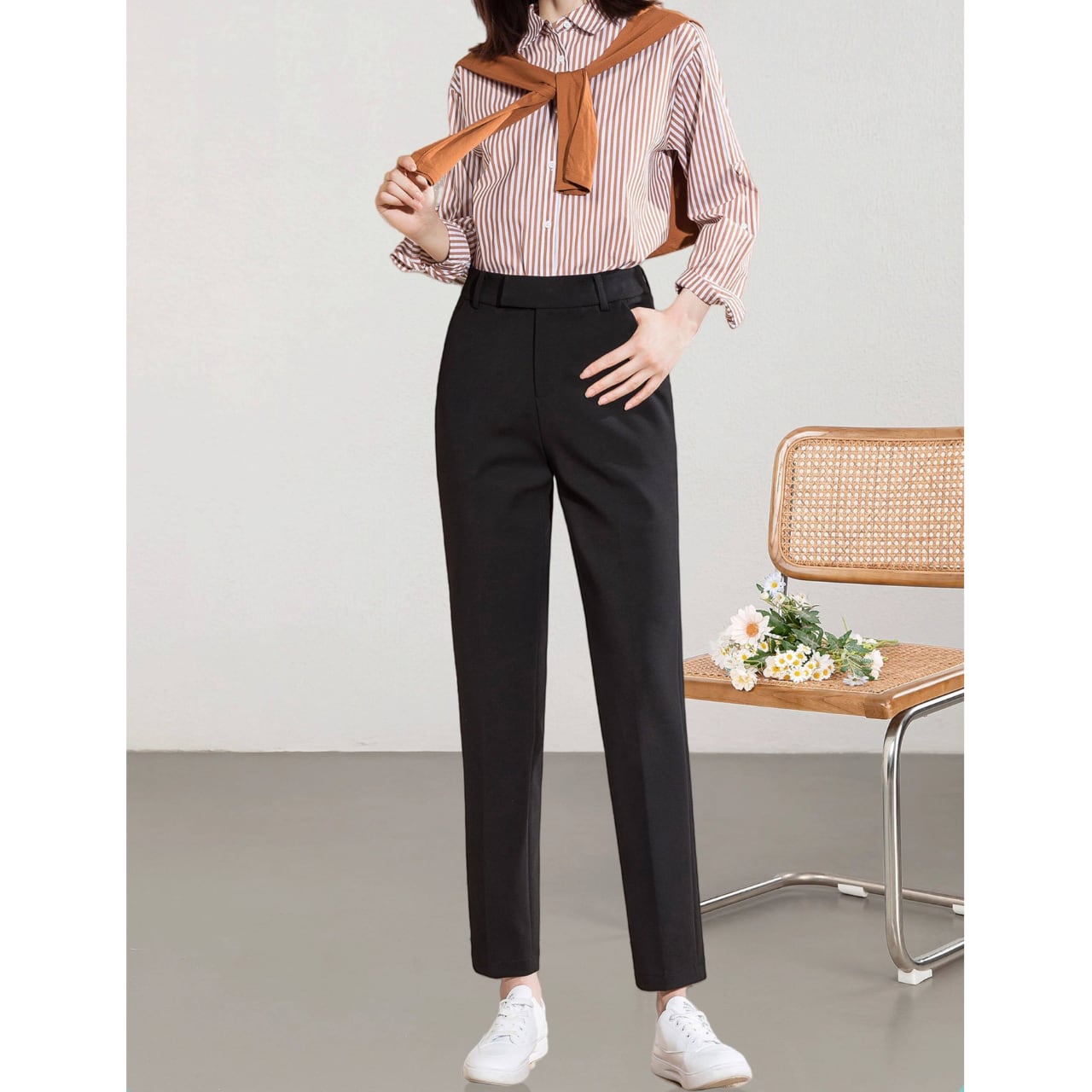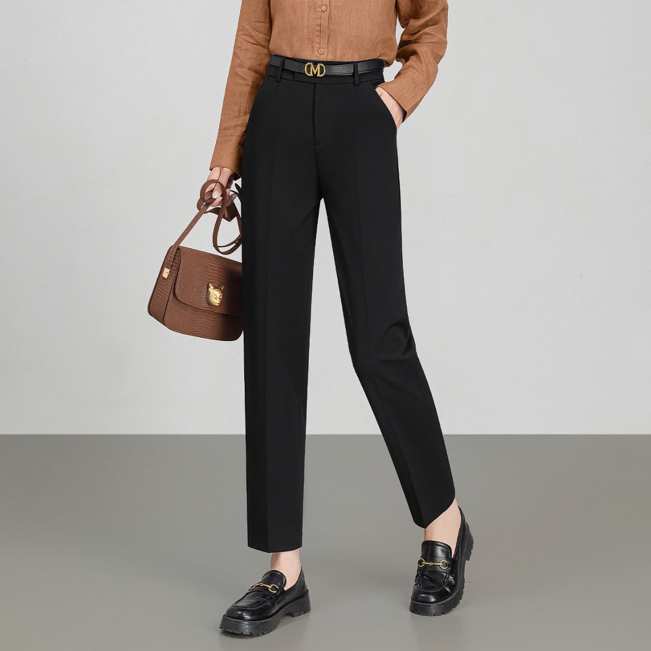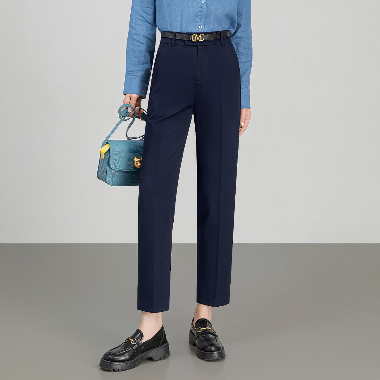 ハイウエスト&センタープレス入りでスタイルアップ効果も期待できます。