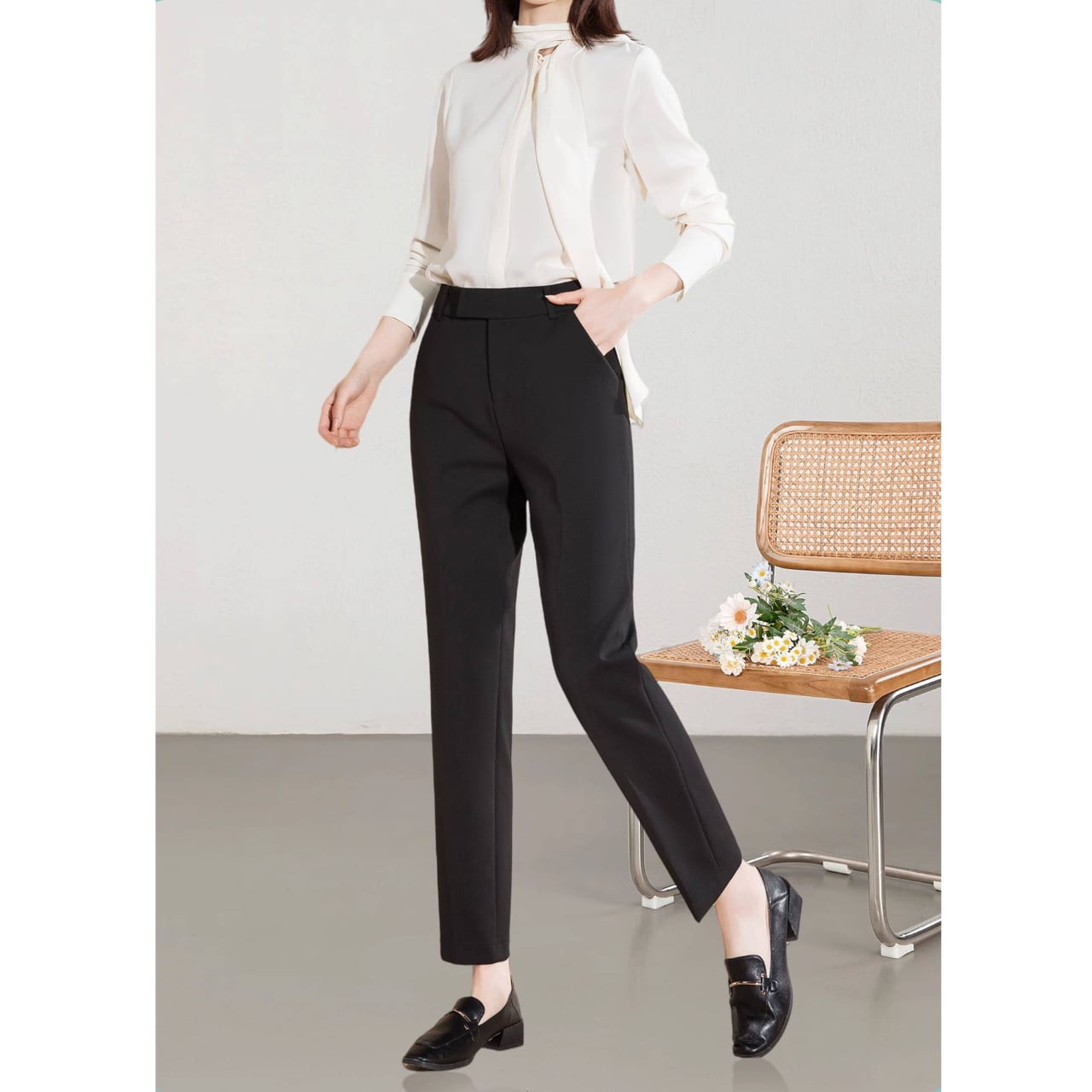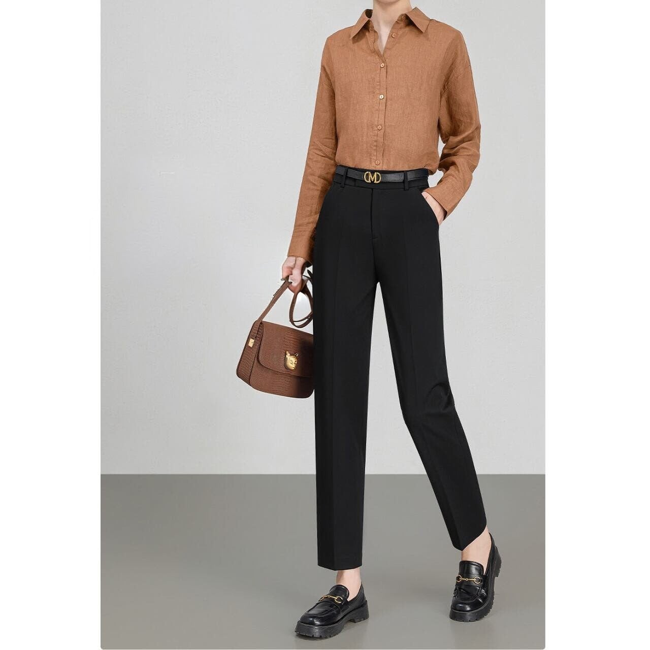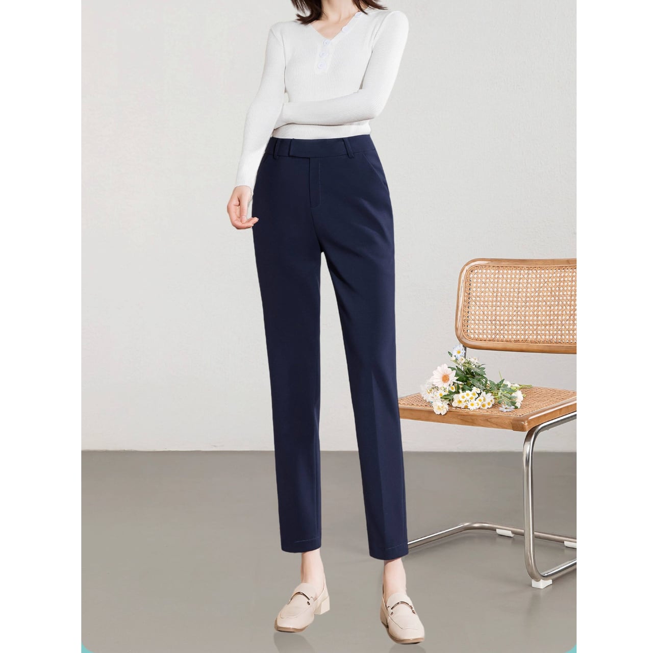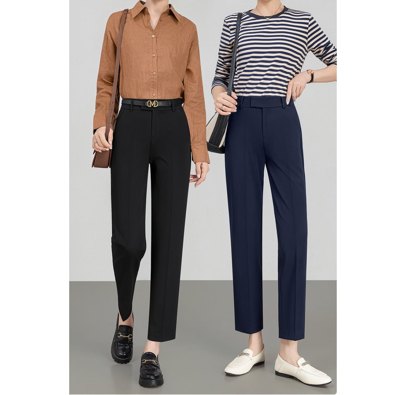 ハイウエスト&センタープレス入りでスタイルアップ効果も期待できます。