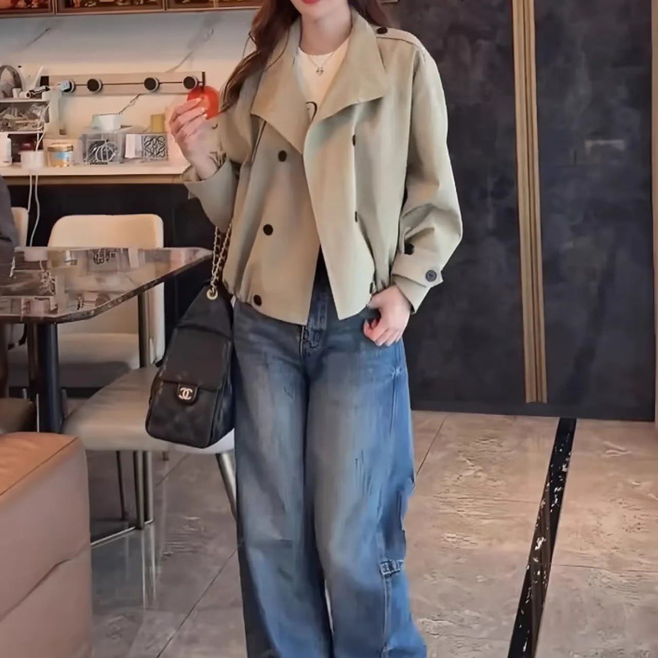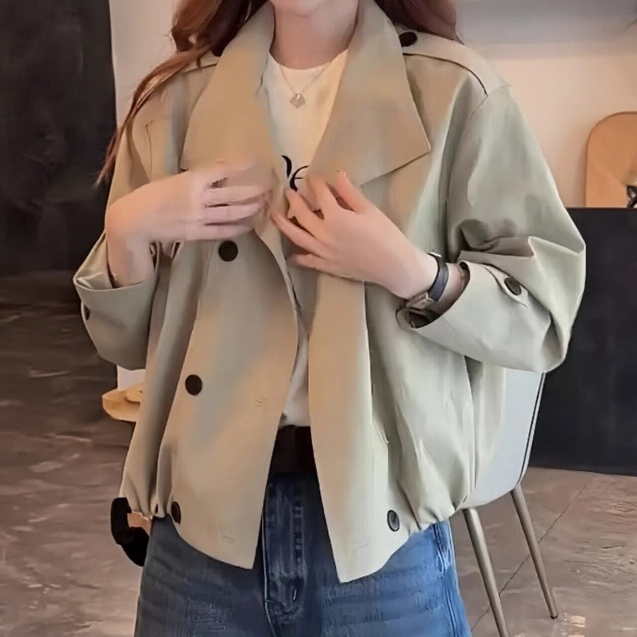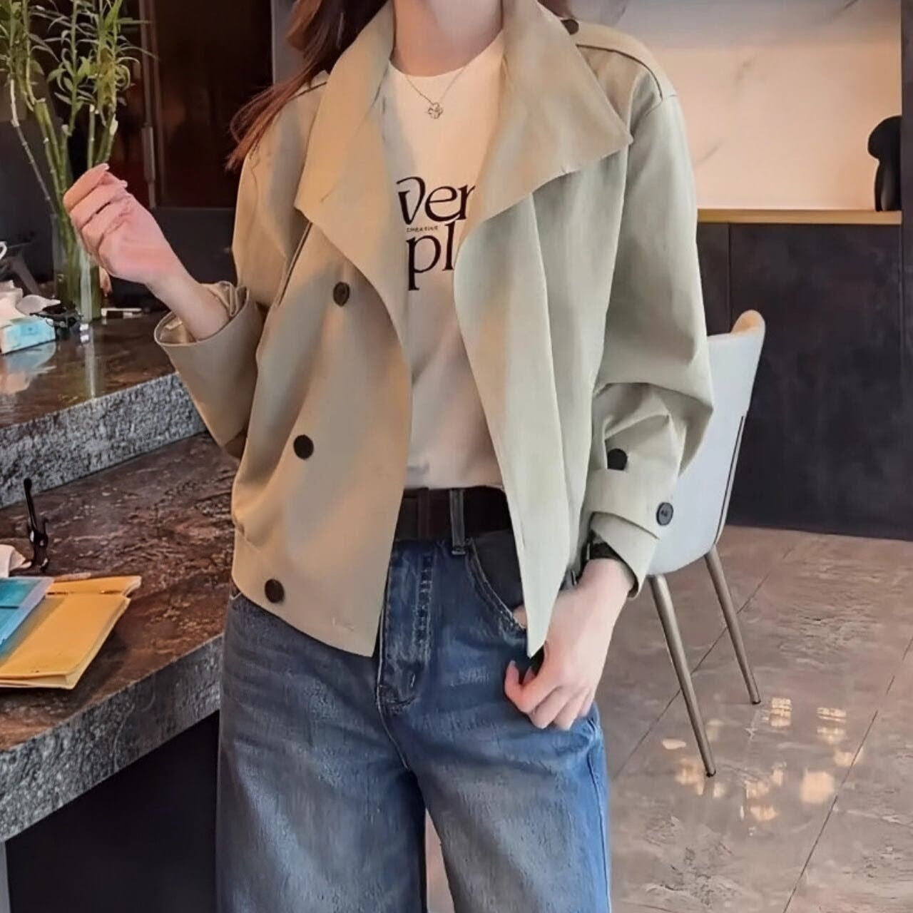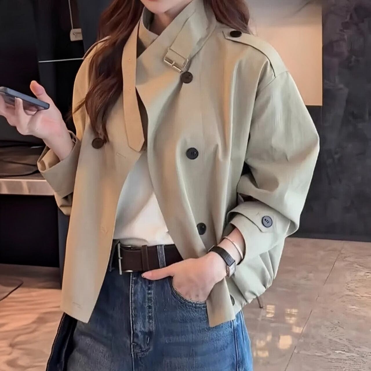 いつものコーデに新鮮さをプラスする、ショート丈のトレンチライクなブルゾン。