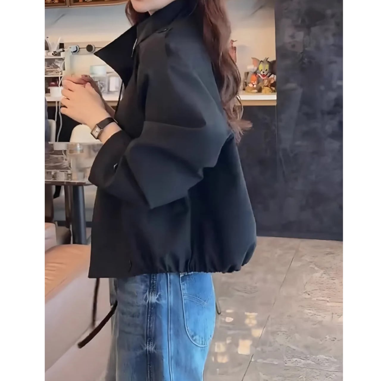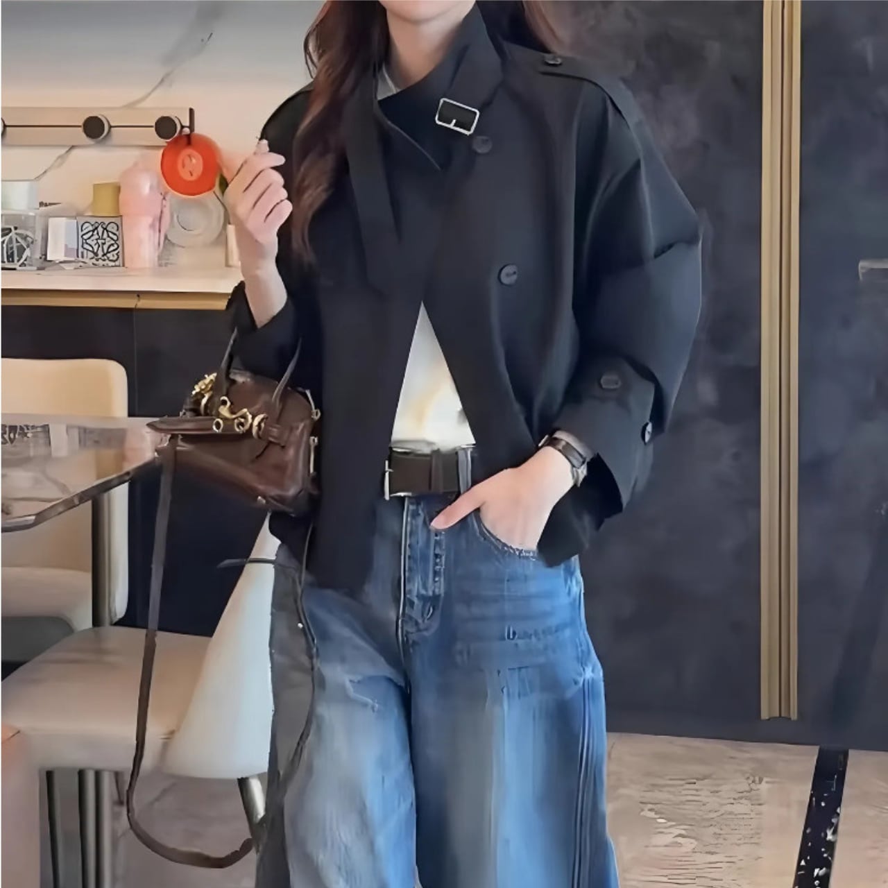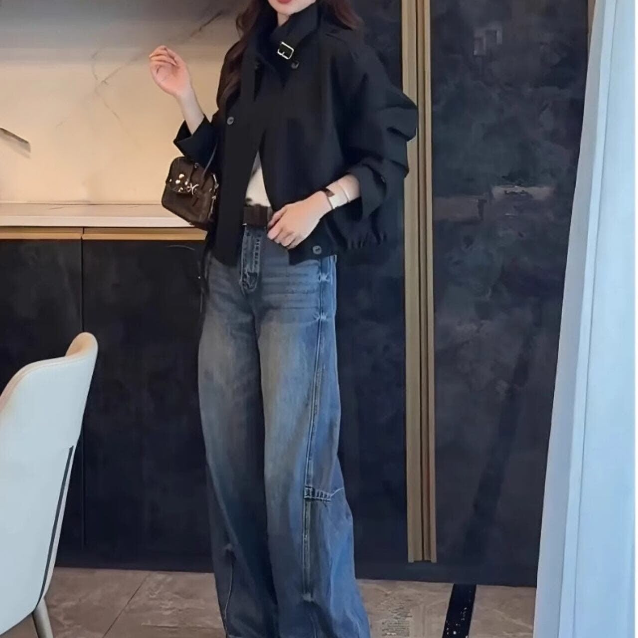 短めの丈感はスタイルアップ効果も期待でき、バランスの取れた着こなしを実現します。