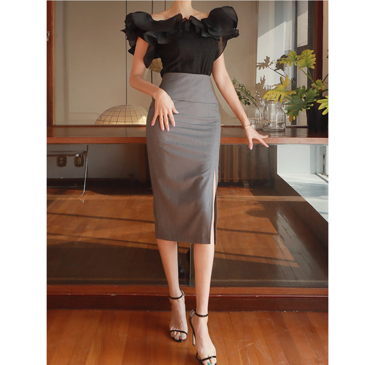 ハイウエストのボトムスと合わせてスタイルアップ効果も期待できます。