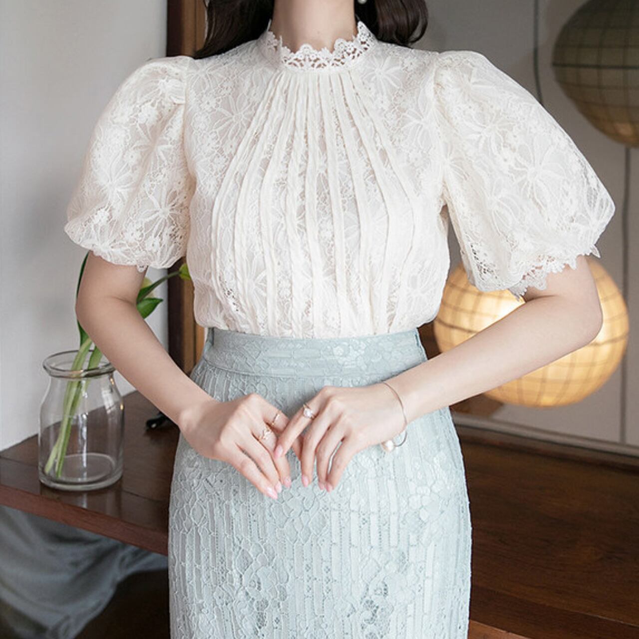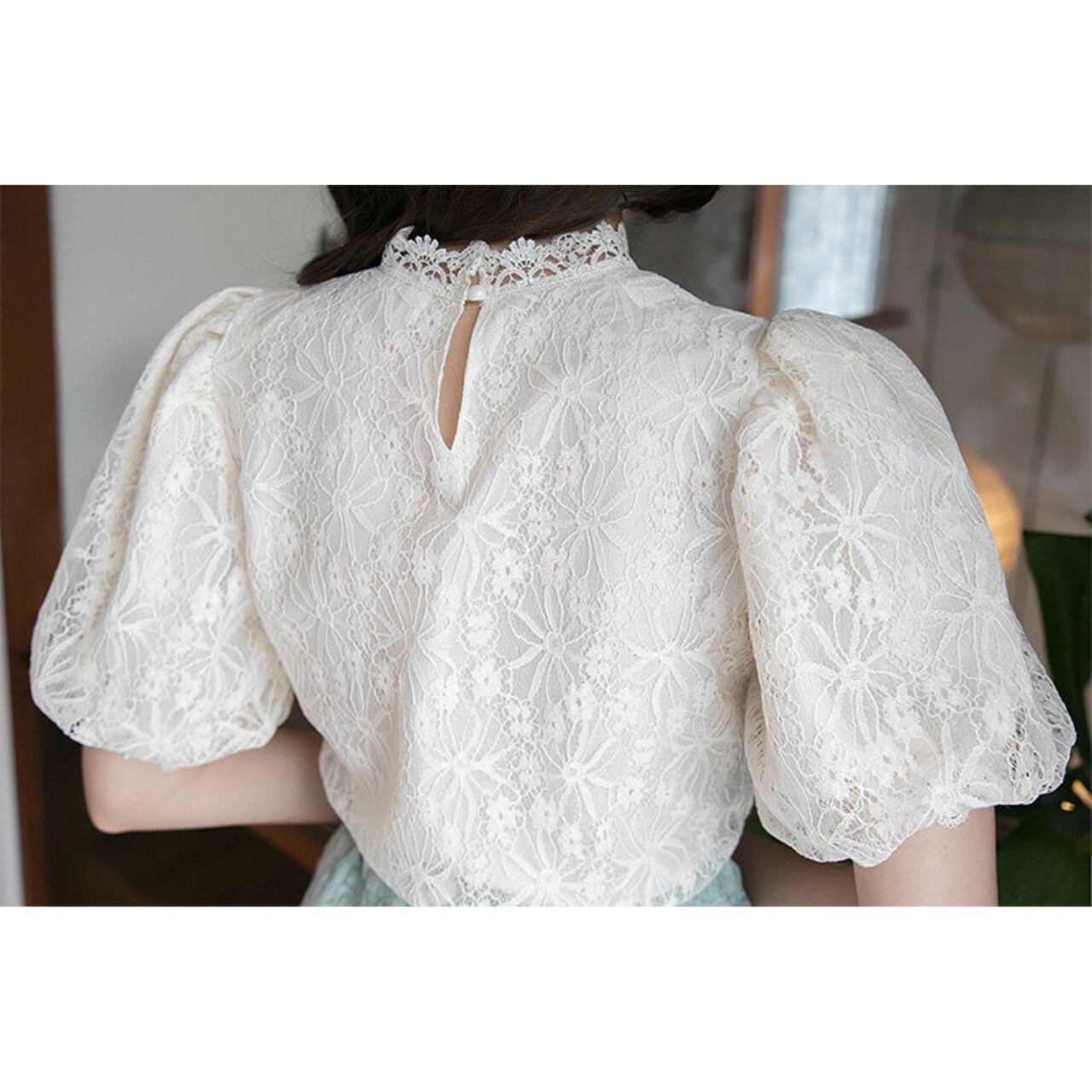 バルーンシルエットの長め袖丈が二の腕をカバーしながら、女性らしさも引き立てます。