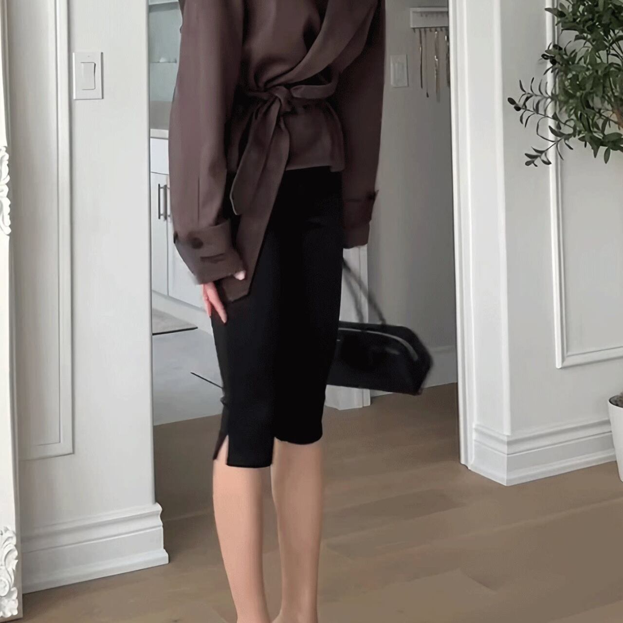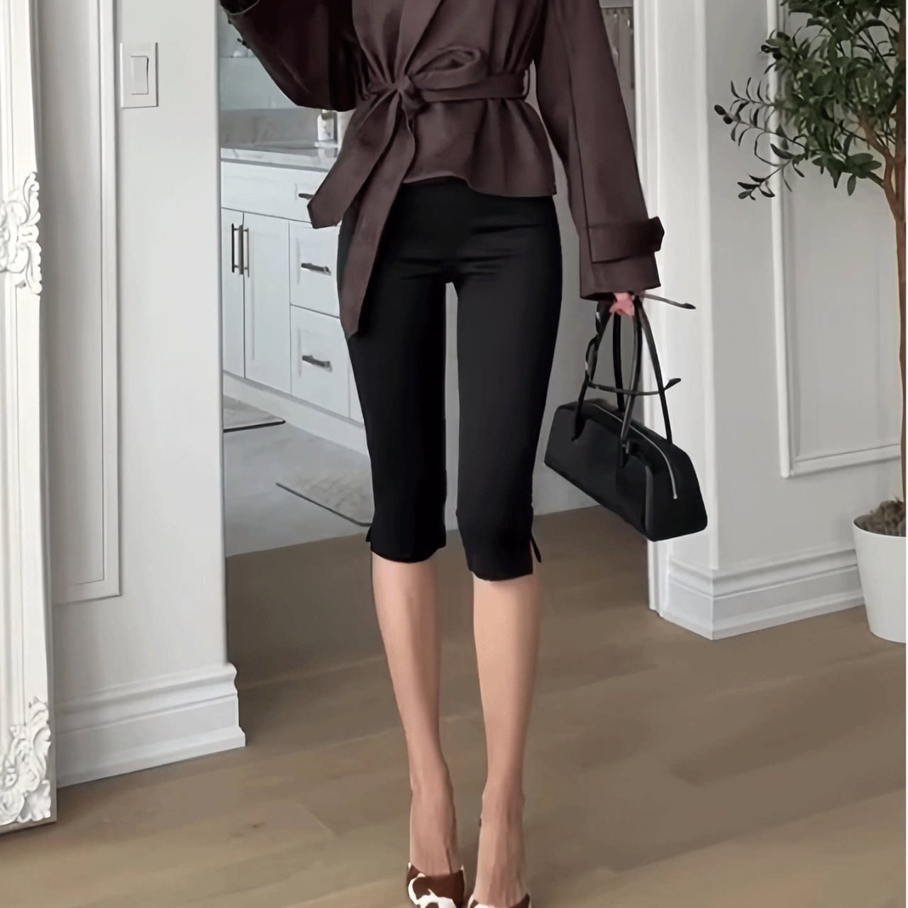 サイドスリットがポイントのカプリパンツ。